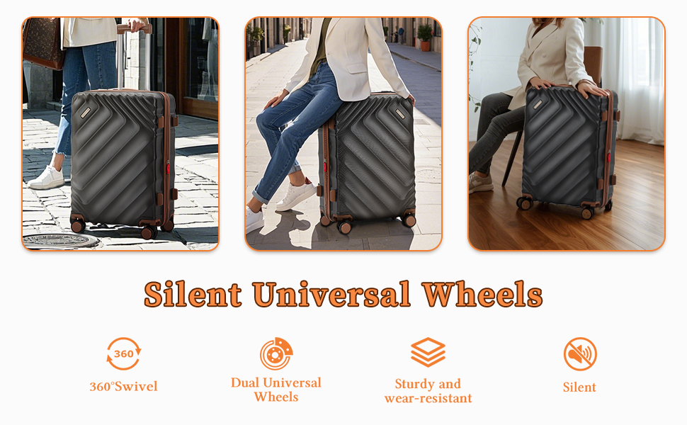 【8 عجلات دوارة صامتة دوارة ناعمة】مجموعات حقائب روزامو مجهزة بـ 8 عجلات دوارة مسطحة عالية ومستقيمة ماصة للصدمات. يضمن هذا التصميم المبتكر رحلات أكثر هدوءًا وسلاسة. يمكنك الاستمتاع بالدوران الحر بزاوية 360 درجة والاستمتاع بالتحكم الاستثنائي في الاتجاه، مما يسمح بقدرة سلسة على المناورة على أي سطح.