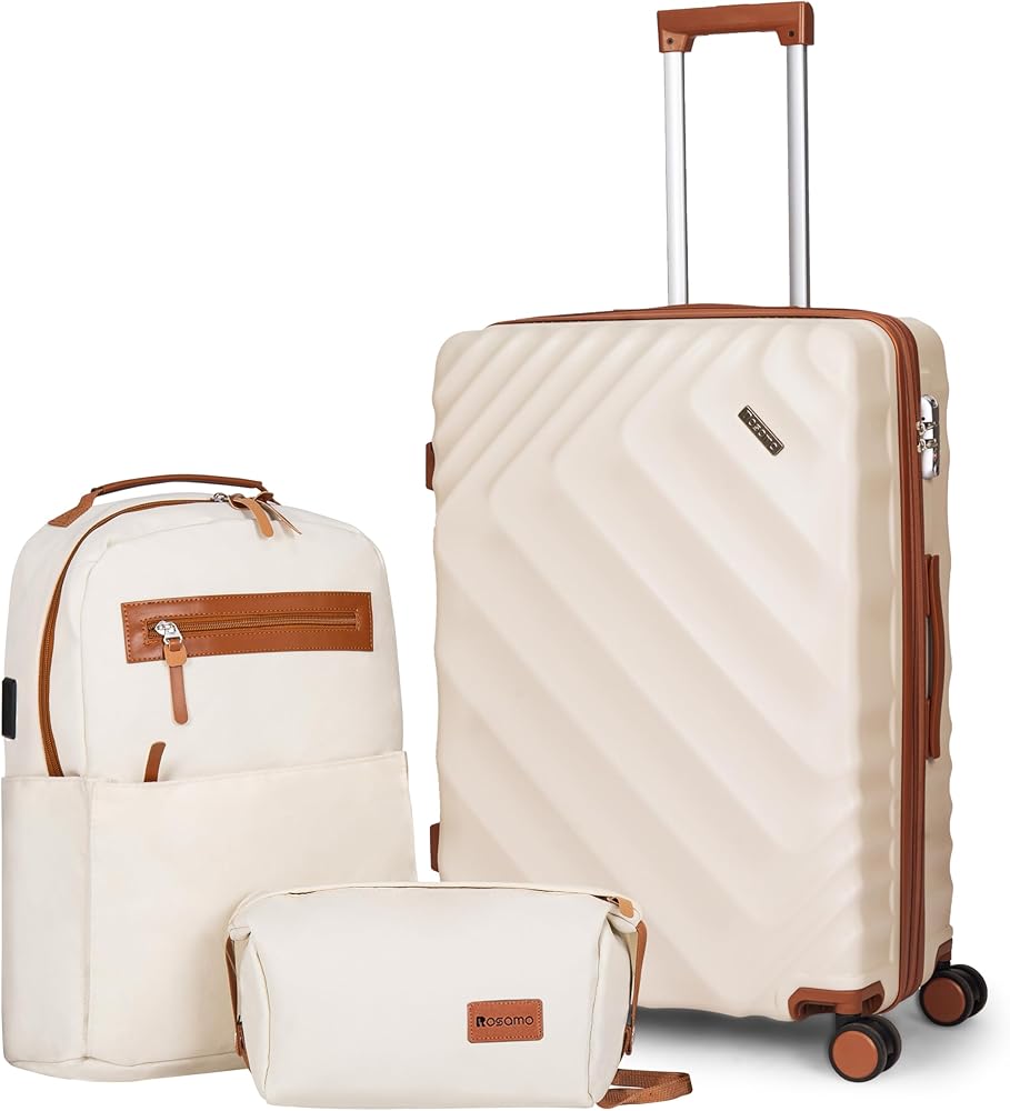 【مجموعة أمتعة قابلة للتوسيع مكونة من 3 قطع】تقدم روزامو مجموعة أمتعة رائعة مكونة من 3 قطع تشمل حقيبة أمتعة مقاس 20 بوصة وحقيبة ظهر وحقيبة أدوات الزينة. الميزة البارزة هي أن الحقائب قابلة للتوسيع، مما يوفر لك مساحة إضافية عندما تكون في أمس الحاجة إليها.