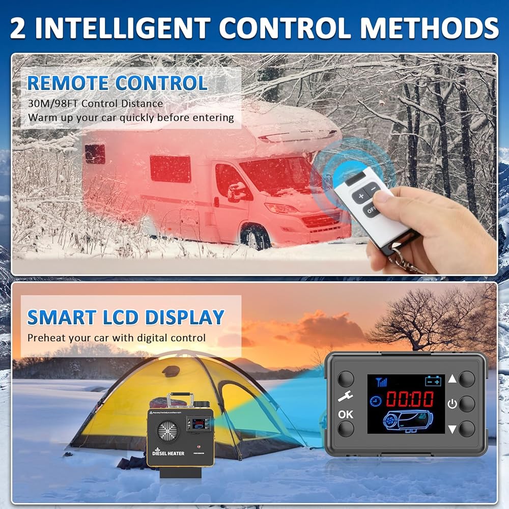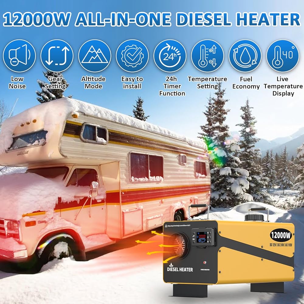 سخان ديزل 110 فولت/12/24 فولت 12000 وات، سخان انتظار ديزل هواء الكل في واحد بتصميم أنيق، يأتي مع جهاز تحكم عن بعد وشاشة LCD، وظيفة مؤقت لمرآب متجر المنزل (بدون موقوتة)