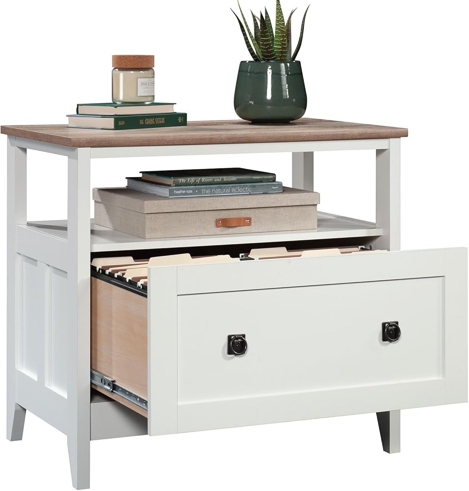 Modern Home Office Storage: Stylish white finish with subtle wood-tone accents enhances any office, study, or living space while keeping documents neatly organized.