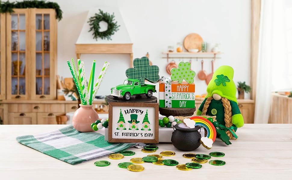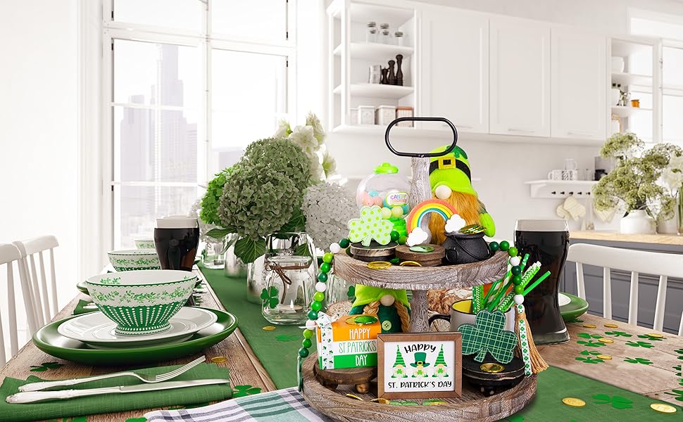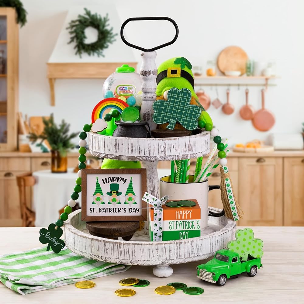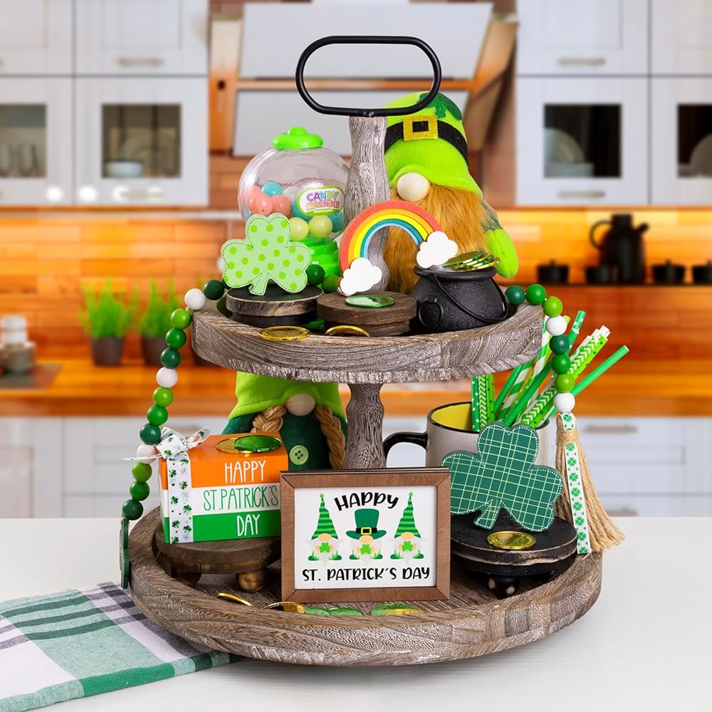 [𝑪𝒉𝒂𝒓𝒎𝒊𝒏𝒈 𝑰𝒓𝒊𝒔𝒉 𝑽𝒊𝒃𝒆] تُنشئ هذه الديكورات الرائعة لعيد القديس باتريك عروضًا ساحرة مع صواني متدرجة، مما يضفي جوًا مرحًا على منزلك ويحتفل بأسلوب مطلق.