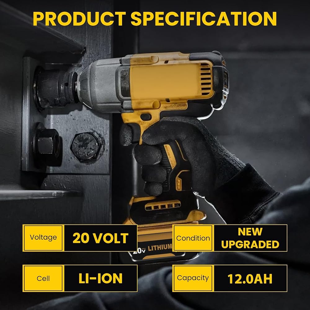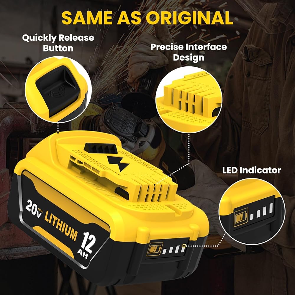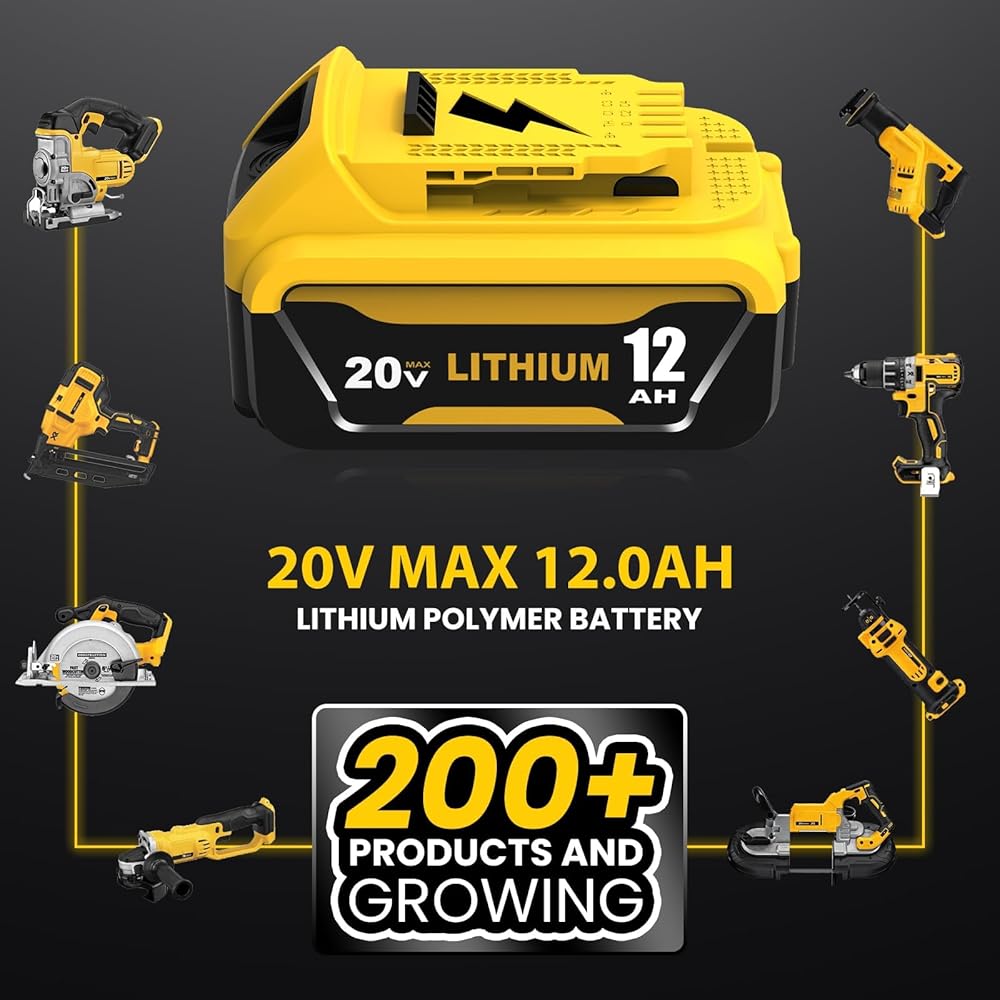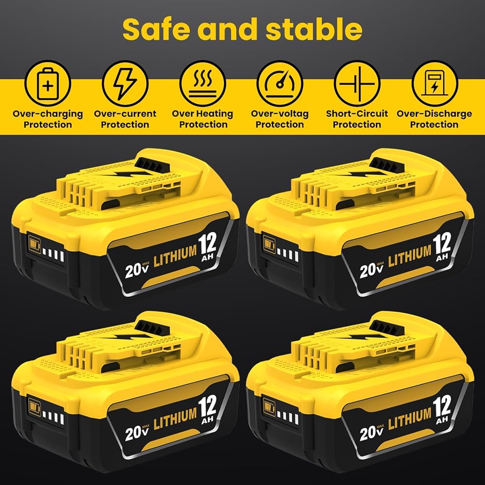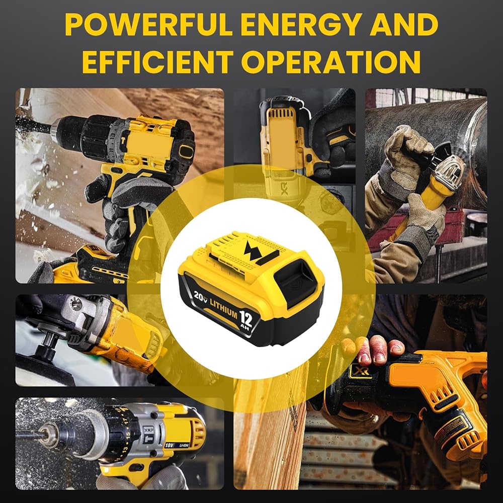 4 عبوات 12000 مللي أمبير في الساعة بديلة عالية السعة لبطارية ديوالت 20 فولت كحد أقصى متوافقة مع بطارية ليثيوم ديوالت 20 فولت بحد أقصى DCB200 DCB201 DCB203 DCB204 DCB206 DCB207 DCB181 DCB180 سلسلة أدوات (أصفر)