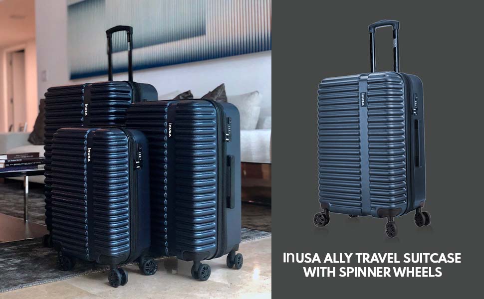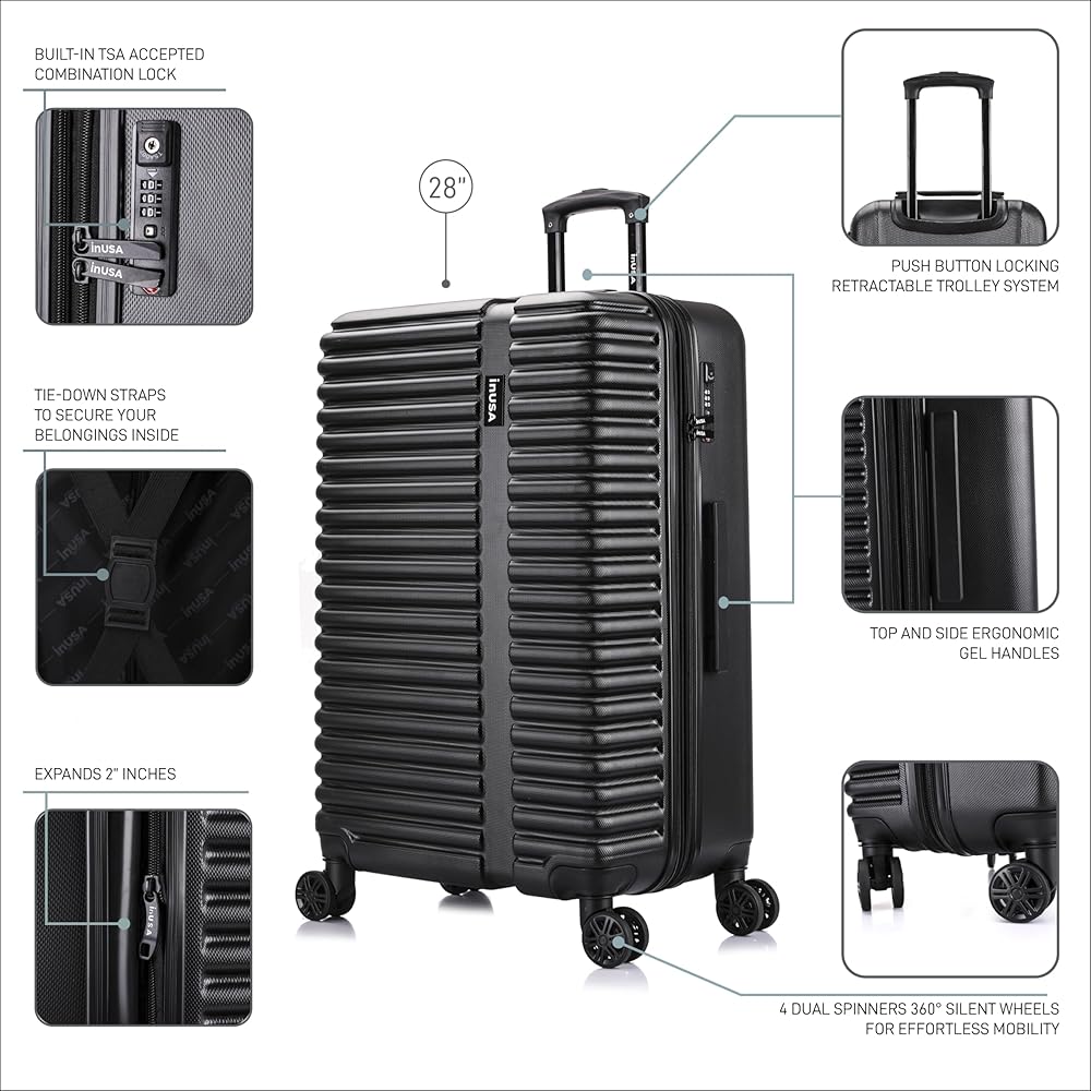 حقيبة سفر من InUSA ALLY بعجلات دوارة | مقابض أمتعة مريحة وخفيفة الوزن وحقائب سفر واسعة بقفل TSA | حقيبة أمتعة كبيرة الحجم مقاس 28 بوصة | أسود