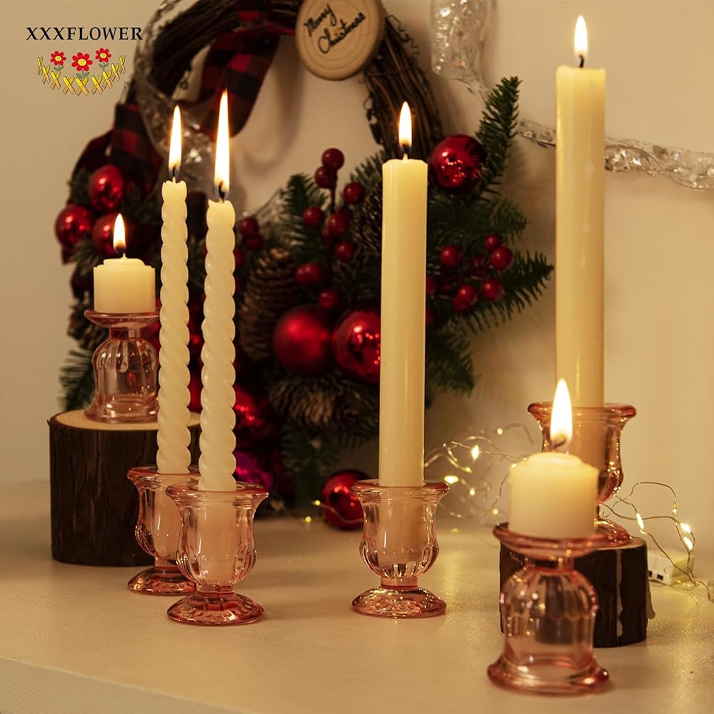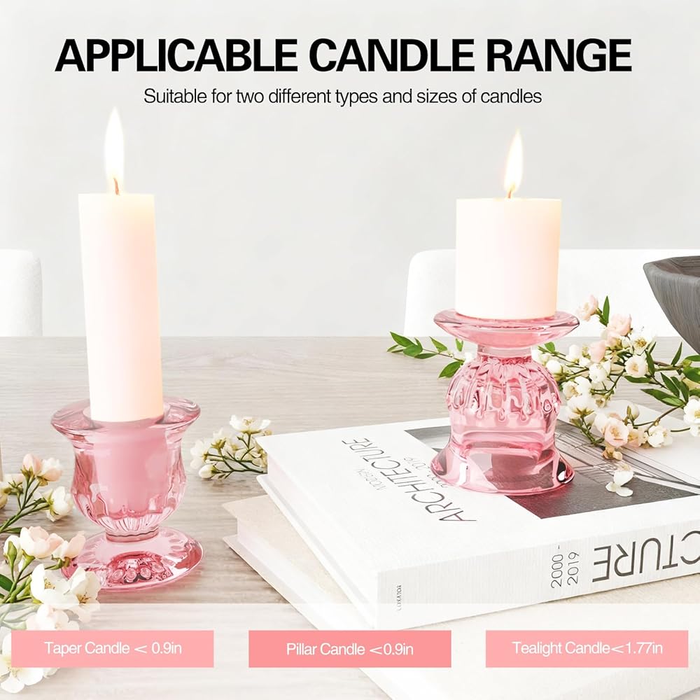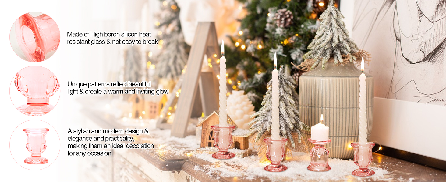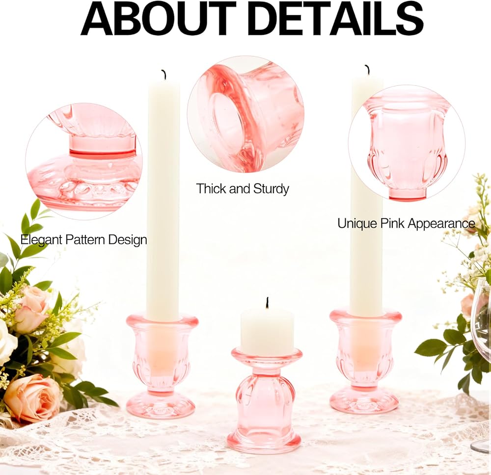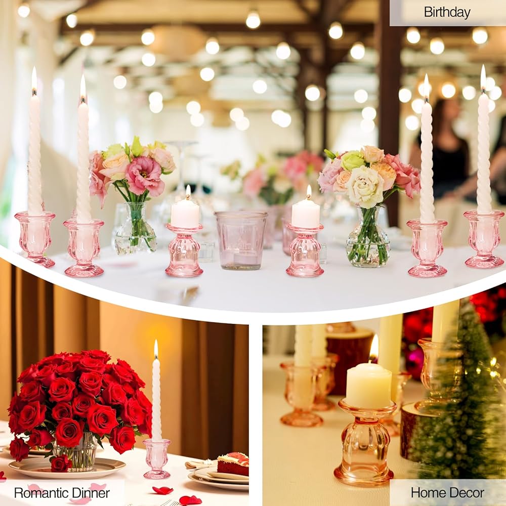 【حاملات شموع زجاجية أنيقة】 تتميز مجموعة الشموع المدببة هذه بنمط مصنوع بعناية يخلق جوًا فريدًا تحت ضوء الشموع ويكمل بسهولة أي إعداد طاولة أو نمط ديكور. كحامل شموع رائع لعيد الحب، يضيف المظهر الوردي الفريد لمسة من الأناقة والنبل إلى مساحتك الخاصة.