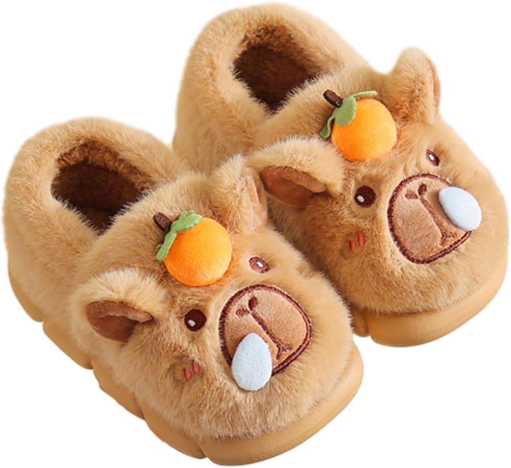 Adorable Appearance – Kids Will Love It: Designed in the shape of a cute capybara with a stitched brown nose, blue nose tip detail, and soft blush cheeks, these slippers bring a delightful and playful touch to your child's everyday wear. The little orange plush decoration on the upper adds extra fun and charm, making them instantly attractive to children who love cute and imaginative styles.