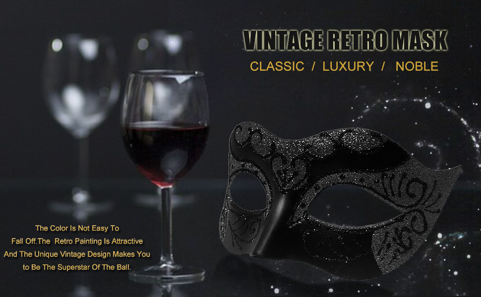 كلاسيكية وفاخرة - الأقنعة التنكرية للرجال رائعة ولا تحتوي على مبيضات، ومريحة في الارتداء. مناسبة تمامًا لمعظم أشكال الوجه. مصنوعة من مادة PVC السميكة جنبًا إلى جنب مع اللون الأسود الكلاسيكي الجذاب، فهي منخفضة المستوى ولكنها غامضة، تجعل الرجال أنيقين وملفتين للأنظار.