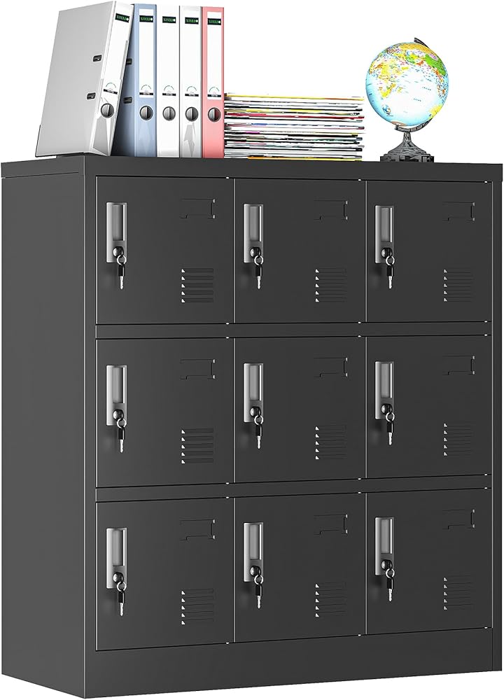 قابلة للقفل: كل حجرة من الخزانة المعدنية مجهزة بقفل ومفتاح مستقلين لضمان خصوصية وأمان التخزين الشخصي. تحتوي الأبواب على فتحات تهوية لضمان دوران الهواء بشكل جيد داخل المقصورات.