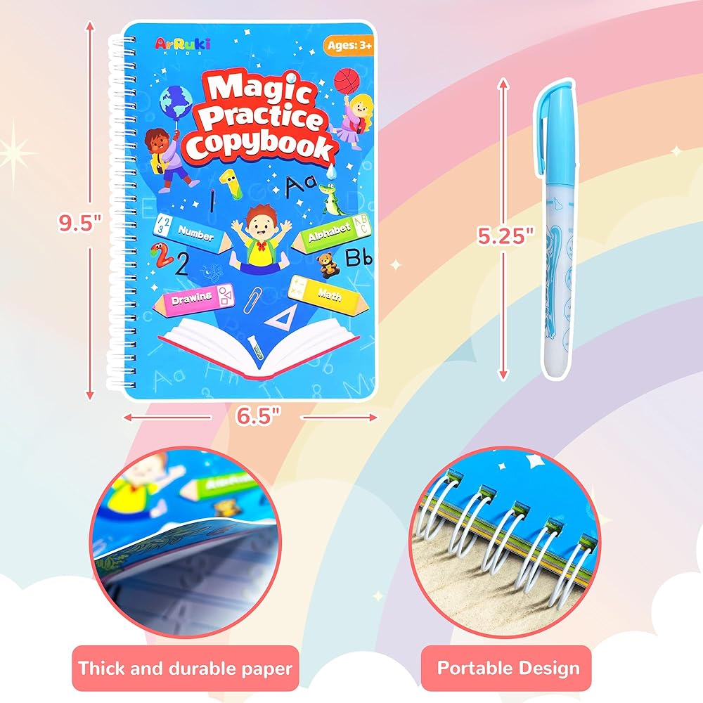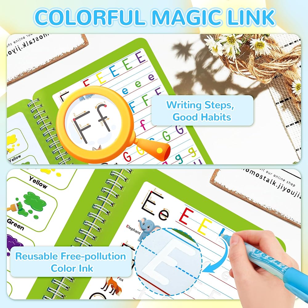 • الهدية المثالية للأطفال المبدعين: يُعد كتاب الخط هذا هدية مثالية لعيد الميلاد أو العطلة للأولاد والبنات الذين تتراوح أعمارهم بين 3 و8 سنوات. تتميز مجموعة كتب التدريب على الكتابة هذه بتأثيرات حبر سحرية وتصميم متين، وهي تلهم التعبير الفني دون متاعب التنظيف. تعد هذه الهدية بساعات من المرح الخيالي والتعلم للأطفال.