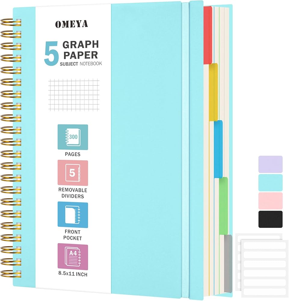 【1 دفتر رسم بياني لاستبدال 5】يتضمن دفتر الرسم البياني OMEYA 5 موضوعات 5 فواصل ملونة قابلة للإزالة و12 ملصقًا لاصقًا، مما يسمح لك بسهولة إنشاء 5 أقسام مستقلة لموضوعات مختلفة. بدلاً من حمل 5 دفاتر ملاحظات منفصلة للرياضيات أو الهندسة، فإنك تحتاج فقط إلى دفتر ملاحظات شبكي واحد متكامل لتنظيم المهام المدرسية ومشروعات العلوم والتكنولوجيا والهندسة والرياضيات والواجبات المنزلية الهندسية والرسومات الفنية وملاحظات العمل والتخطيط اليومي. تساعدك التصنيفات الإضافية على التصنيف بسرعة والعثور على الملاحظات في لمحة سريعة.