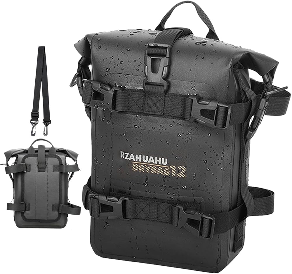 【Material】 This motorcycle frame crash bar bag is made of waterproof PVC layers on both sides, super durable, completely waterproof, tear-resistant, wear-resistant, heat-resistant, and fully protects your belongings. The inner waterproof structure ensures peace of mind even during sudden rain while riding. The plastic buckle is easy to open and close, and the point stitching complements the black color.