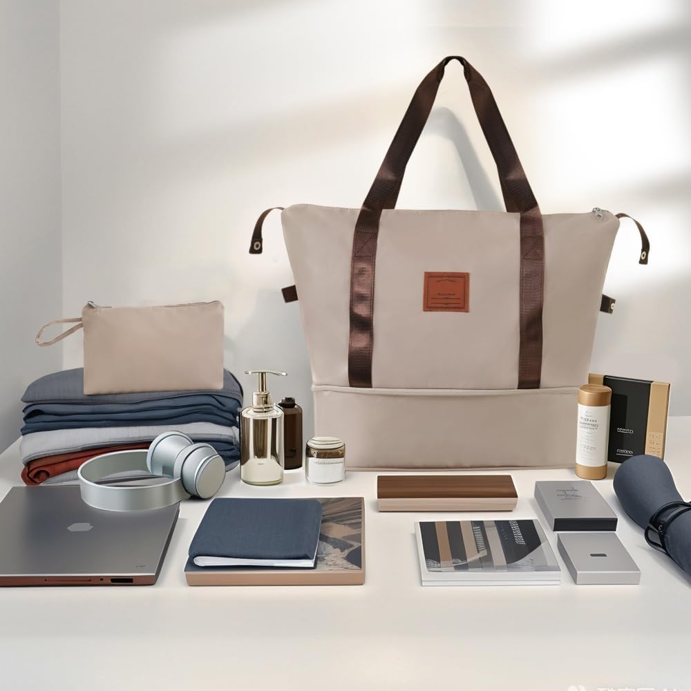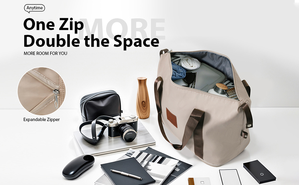 حقيبة من القماش الخشن قابلة للتوسيع: تأتي الحقيبة من القماش الخشن مع جيب بسحاب، ويمكنك ربطها بسهولة بالمقبض القابل للتعديل.