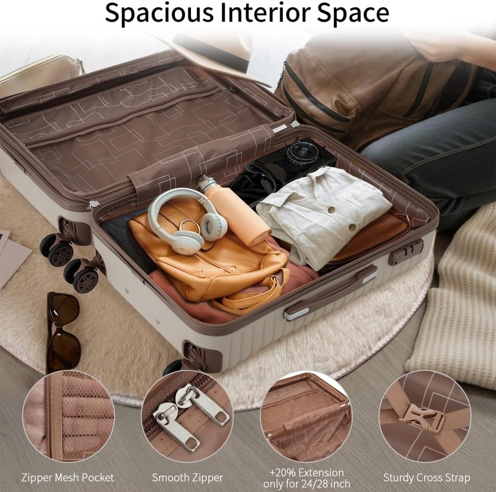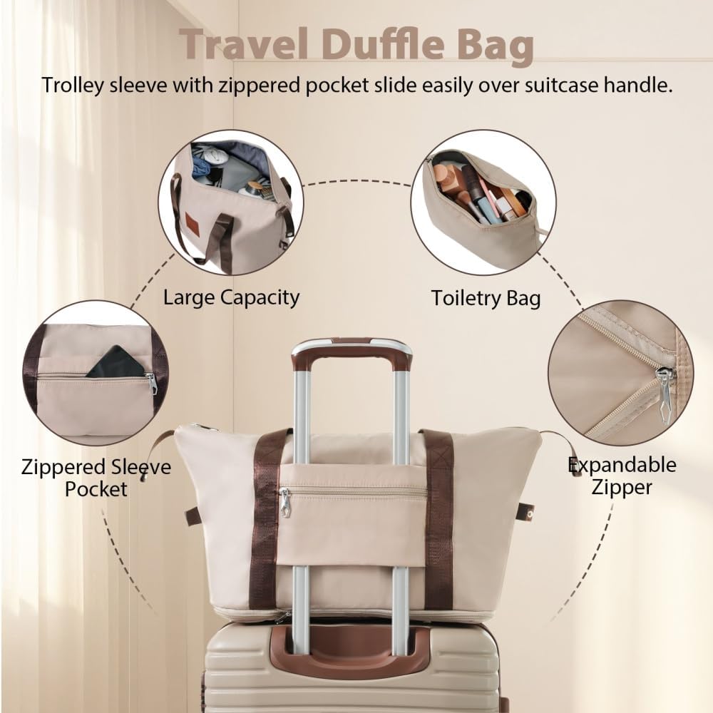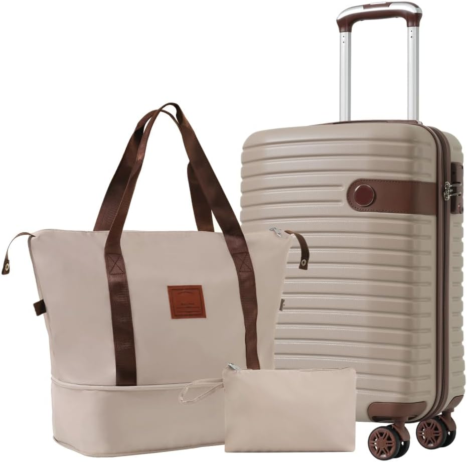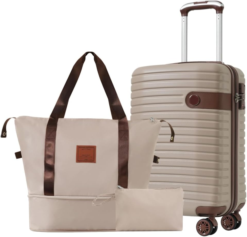 حقيبة السفر مقاس 20 بوصة مصنوعة من مادة ABS عالية الجودة خفيفة الوزن ومتينة ومقاومة للصدمات، وحقيبة السفر وحقيبة أدوات الزينة مصنوعة من قماش أكسفورد المقاوم للماء والخدش، مما يوفر أمانًا شاملاً لجميع متعلقاتك.
