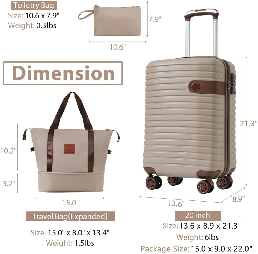 مجموعة مكونة من 3 قطع توفر حقيبة أمتعة مقاس 20 بوصة، وحقيبة سفر لقضاء عطلة نهاية الأسبوع وحقيبة أدوات الزينة. تلبي الأمتعة المحمولة مقاس 20 بوصة متطلبات الحجم لمعظم شركات الطيران - 22x14x9، مما يسمح لك بالسفر دون قلق. مثالية لقضاء عطلات نهاية الأسبوع والرحلات القصيرة. مقاس 20 بوصة: 13.6 بوصة × 8.9 بوصة × 21.3 بوصة.