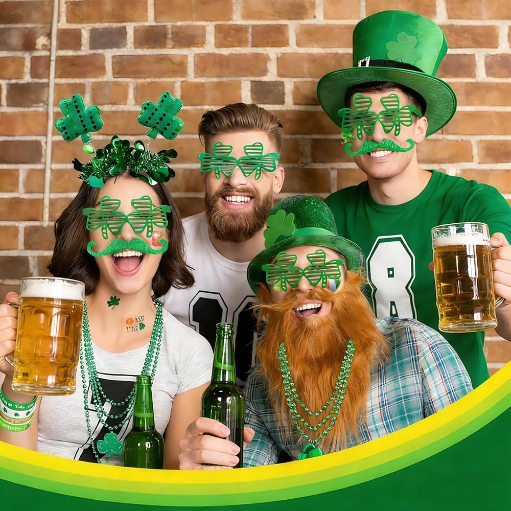 • St. Patrick's Day Theme Design:Designed with the classic eye-catching green as the main tone, all accessories are inlaid with iconic shamrock/four-leaf clover elements, and also add lovely beer necklaces, lucky coins for extra Irish charm. The diverse design of eyeglasses frames enriches the festive layering, and each accessory is a vivid representation of Irish pride. easily making you the focus of the party and highlighting the strong St. Patrick's Day holiday spirit
