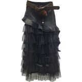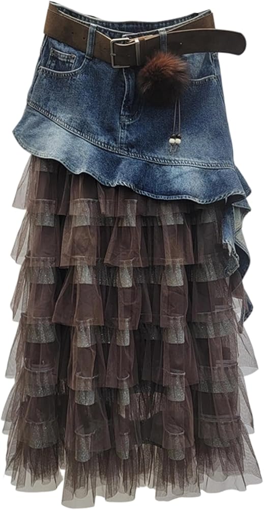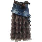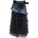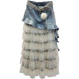 [Design] The denim skirt features lightweight mesh paneling, creating a breathable and semi-transparent contrasting effect, combining a trendy and feminine look.
