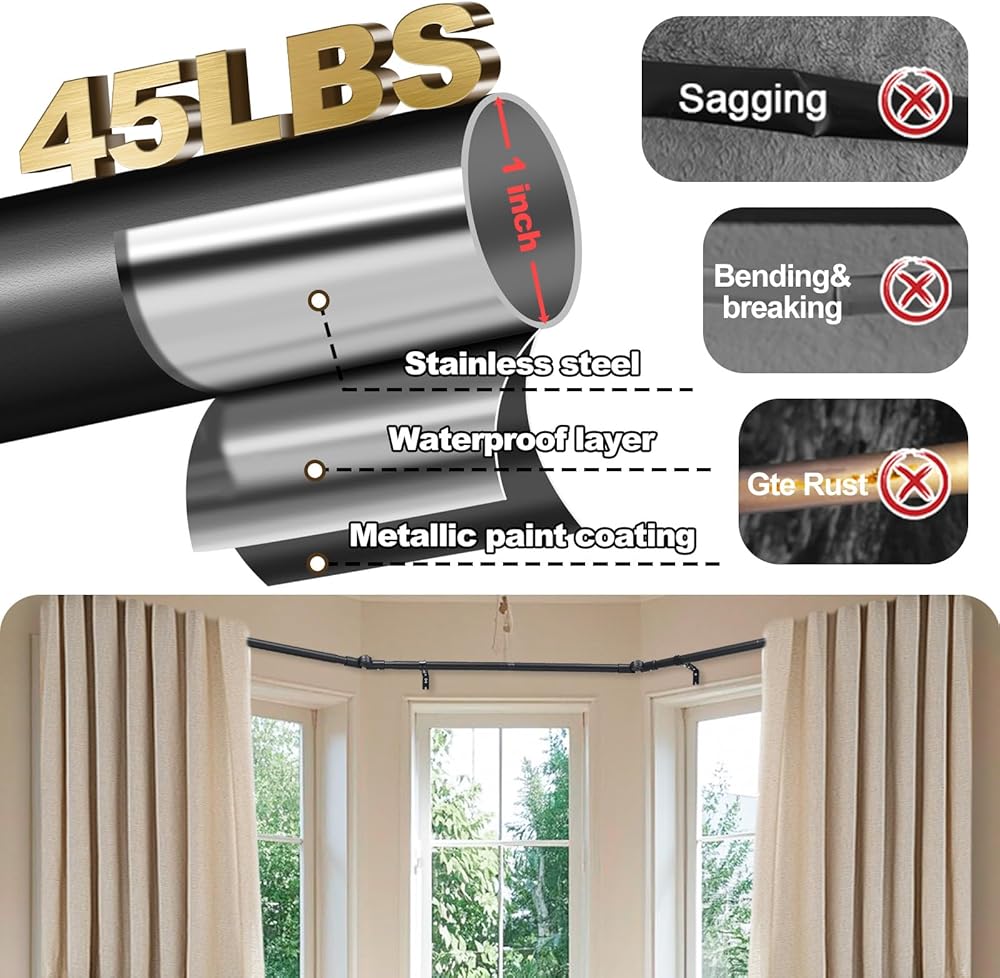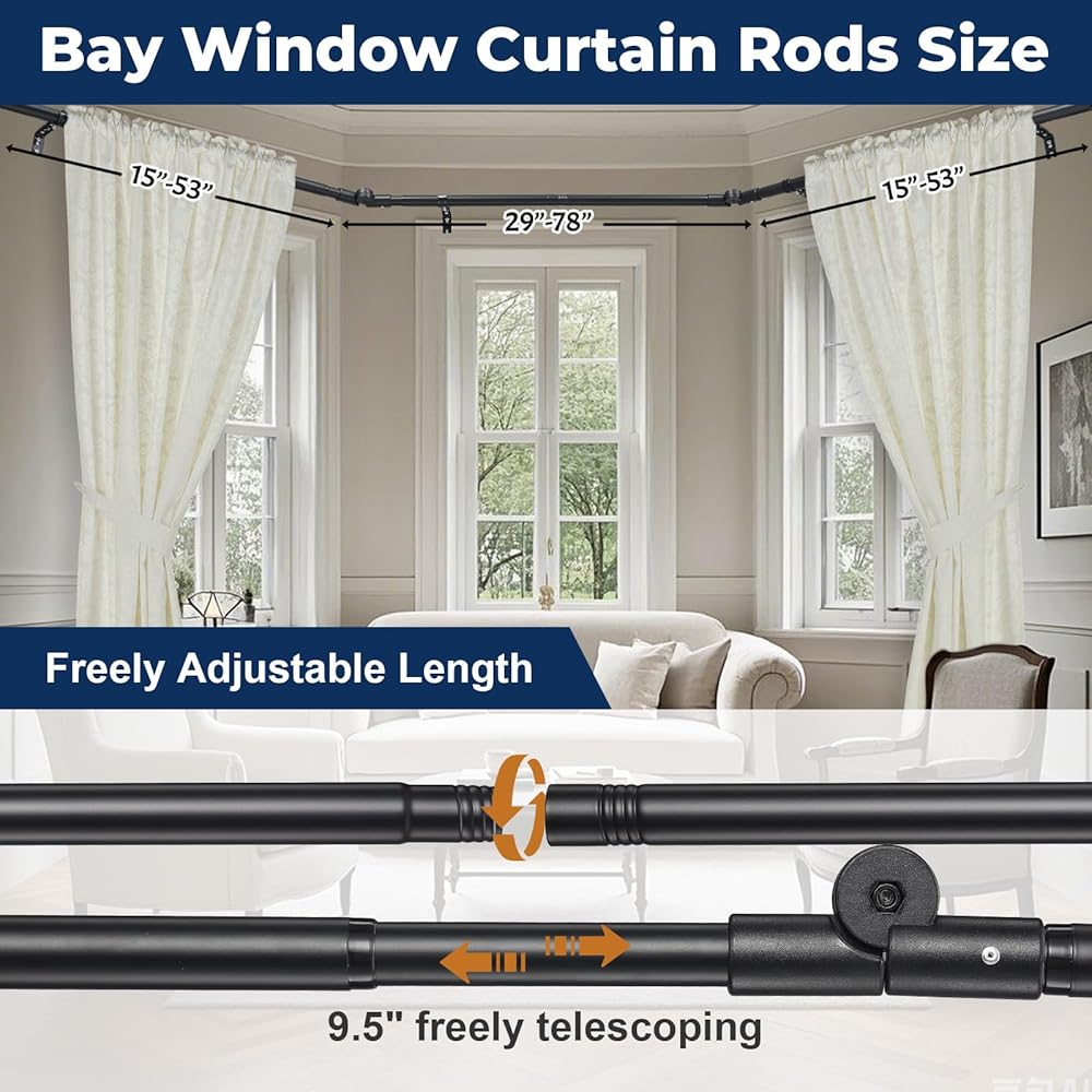 ✅ 𝐒𝐦𝐚𝐫𝐭 𝐋𝐞𝐧𝐠𝐭𝐡 𝐀𝐝𝐚𝐩𝐭𝐚𝐭𝐢𝐨𝐧: يحتوي قضيب ستارة نافذة الخليج الخاص بنا على عمود مركزي يمتد من 29 بوصة إلى 78 بوصة، وجانبين أعمدة تمتد من 15 بوصة إلى 53 بوصة، والتي يمكن أن تلبي احتياجات النوافذ الكبيرة ذات الأحجام المختلفة، وتتميز بمفاصل معززة تحمل ما يصل إلى 30 رطلاً من الستائر دون ترهل.