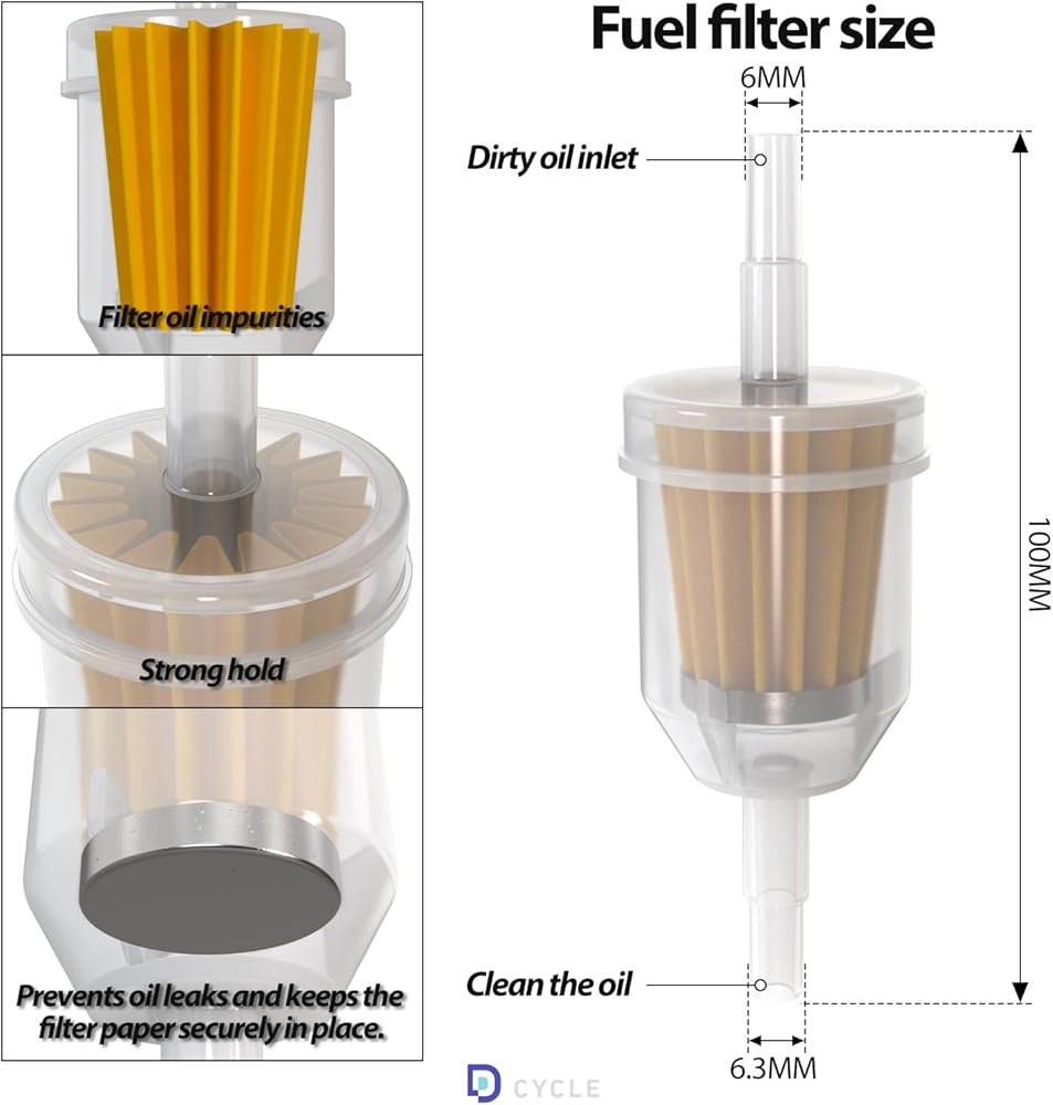 • Premium Product: 2 x 24inch Hose Tube Line. The fuel filter hose is made of rubber material,strong and durable, not easy to deform after processing. The fuel filter shell is high-strength and not easy to damage. The hose clamps can clamp sufficiently to keep the hose connection from leaking,value for money and easy to install