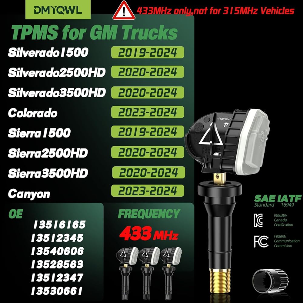✅ [TPMS من الدرجة الممتازة]: ⚙️استبدال OEM : | 13516165;13512345;13540606;13528563;13512347;13530661 إلخ ① التردد: 433 ميجا هرتز، وليس 315 ميجا هرتز; ②الرقاقة: شريحة SNP للسيارات عالية الدقة ثنائية المحور؛ ③ البطارية: خلايا الجهد المستقر، عمر ≥ 5 سنوات؛ ④ مادة الصمام: سبائك الألومنيوم؛ ⑤ الشهادة: شهادة IC/FCC/CE/IP67؛ ⑥ نطاق التشغيل: -40 درجة مئوية + 125 درجة مئوية؛ ⑦ مراقبة الضغط: 0-900 كيلو باسكال.