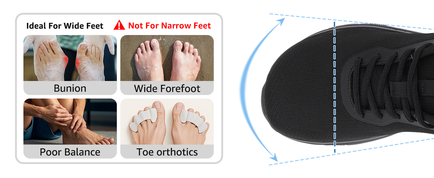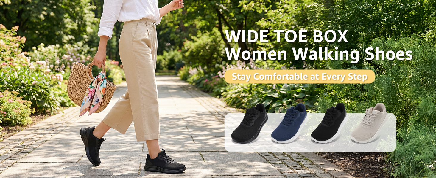 [Wide Toe Box Design] Our women's wide width shoes feature an anatomically designed wide toe box that allows toes to splay naturally, reducing pressure on bones and joints. Ideal for preventing and relieving common foot issues such as bunions and hammertoes, all-day comfort for walking, standing, and daily activities