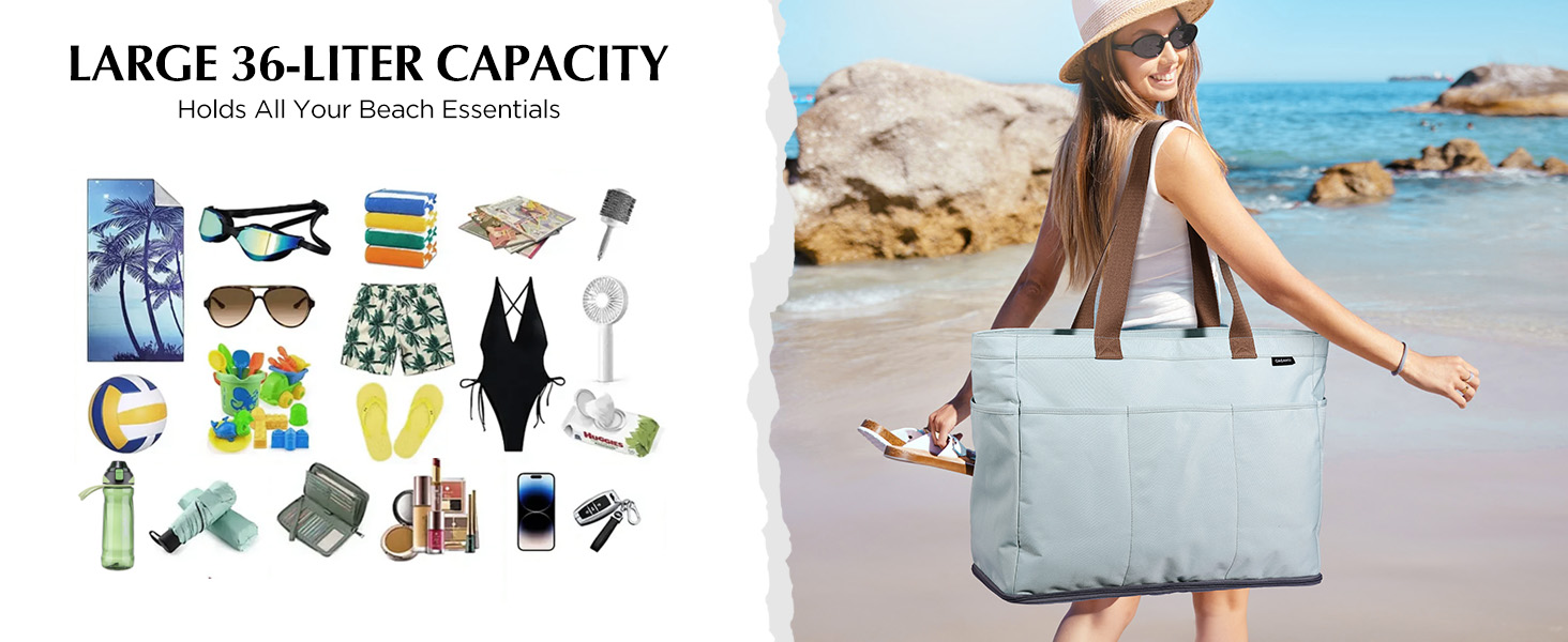 تصميم متعدد الاستخدامات - مثالي ليس فقط للشاطئ وحمام السباحة، ولكن أيضًا للتسوق والتخييم والرحلات البحرية والرياضة والسفر. حقيبة حمل موثوقة وشاملة للعائلات والنساء وعشاق الهواء الطلق.