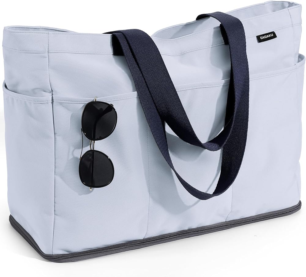 حجم XL واسع ومعالجة مريحة - يبلغ مقاسها حوالي 19.69 × 7.48 × 14.96 سم، وهي كافية للمناشف ومستلزمات الشاطئ والتسوق. تتميز بمقابض مبطنة معززة للحمل المريح حتى عند التحميل الكامل.