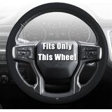 الملاءمة: غطاء عجلة قيادة مخصص لسيارة Chevy Silverado 1500 2019-2025/2500 3500 2020-2025/Blazer 2019-2025/Suburban Tahoe 2021-2024. (ملاحظة: متوافقة فقط مع العجلة المحددة الموضحة في الصورة. يرجى التحقق مما إذا كانت عجلة القيادة الخاصة بك متوافقة.)