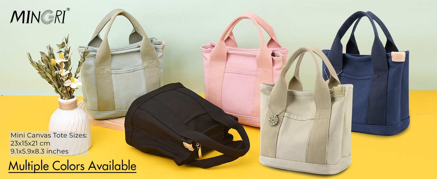 【Multi-pocket Canvas Tote Bag】 Tote bags are available in 2 sizes, large tote:12.6"L x 5.9"W x 11.4"H , handle height: 7.5"; mini small tote: 9.0"L x 5.9"W x 8.3"H, handle height: 4.0". You can choose canvas tote bags of different sizes and colors according to your fashion and travel needs. Perfect size crossbody tote bag to hold your daily essentials with ease.