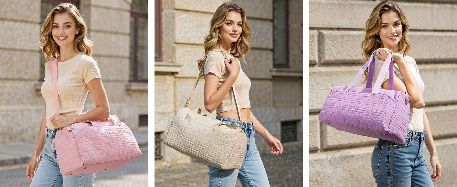 【Comfy & Durable Materials Travel Bag】This tote bag for women is crafted from soft, thick, and durable taslon. The bottom features 5 metal feet, to keep the fabric from wearing. The sturdy zippers and quilted stitching, reinforced handles, regular handles and a longer adjustable handle that can be slung across the body, perfect for taking the things you need for sports, weekend trips, gym, yoga, travel, business or an overnight stay at the hospital.