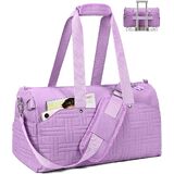【Airplane Friendly Weekender Bag】The duffle bag is 17.7 x 9.9 x 8.7 inch, meets most international carry-on requirements. Fits in the overhead compartment as well as the under seat as personal Items in flight. 1.4 lbs weight. Luggage strap on the back of the travel duffle bag can be inserted and secured to the handle of the luggage, freeing your hands. One zippered pocket on the back to hold your phone or passport.