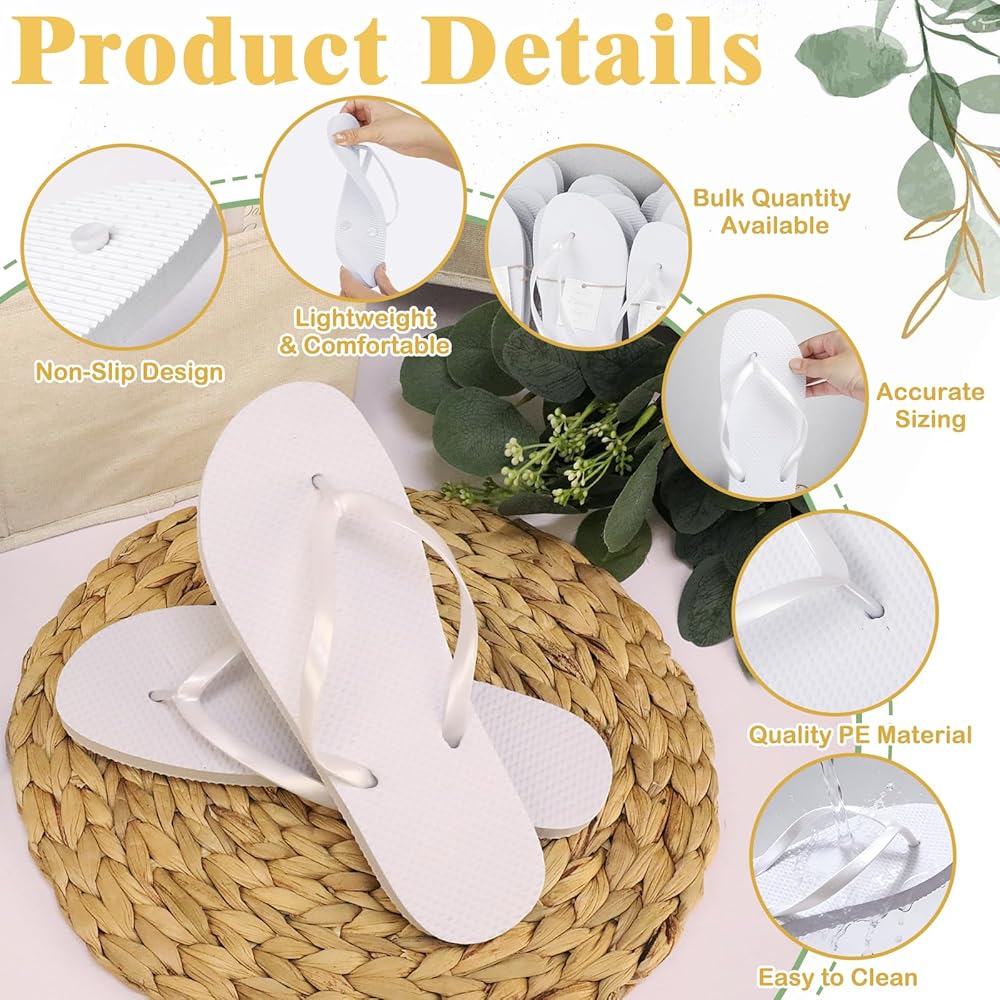 محتويات العبوة: سوف تحصل على 48 زوجًا من الشباشب الكبيرة المتوفرة في 4 مجموعات من المقاسات العملية، بما في ذلك 9 أزواج من المقاس 6 (24.6 سم/9.69 بوصة)، 15 زوجًا من المقاس 7 (25.3 سم/9.96 بوصة)، 15 زوجًا من المقاس 9 (26.6 سم/10.47 بوصة)، و9 أزواج من المقاس 11 (28 سم/11.02 بوصة). ليست هناك حاجة إلى عمليات شراء إضافية لتلبية متطلبات الأحذية الأساسية للمناسبات واسعة النطاق
