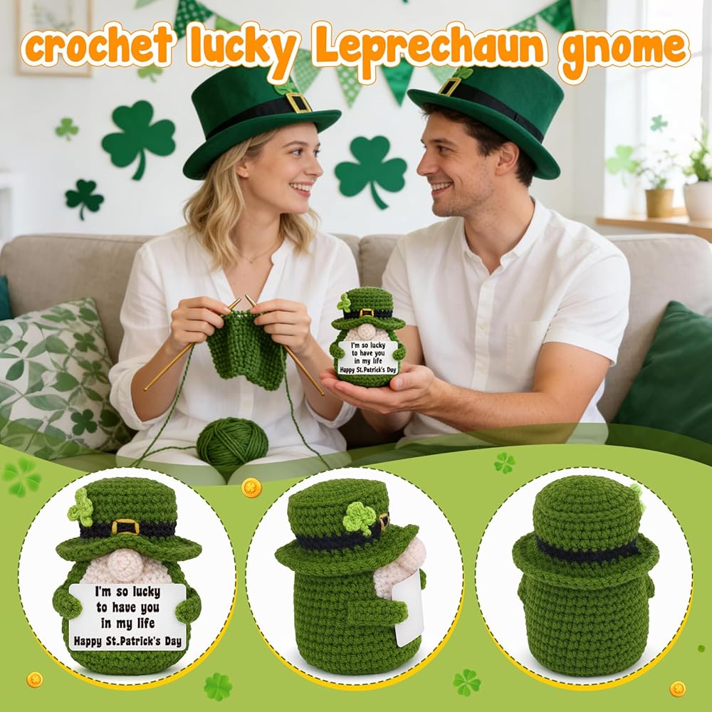 Cute Piece of St Patrick's Day Decor: Let someone special know you're lucky to have them with this adorable crochet leprechaun gnome, a perfect accent for your spring and St. Patrick's Day decorations
