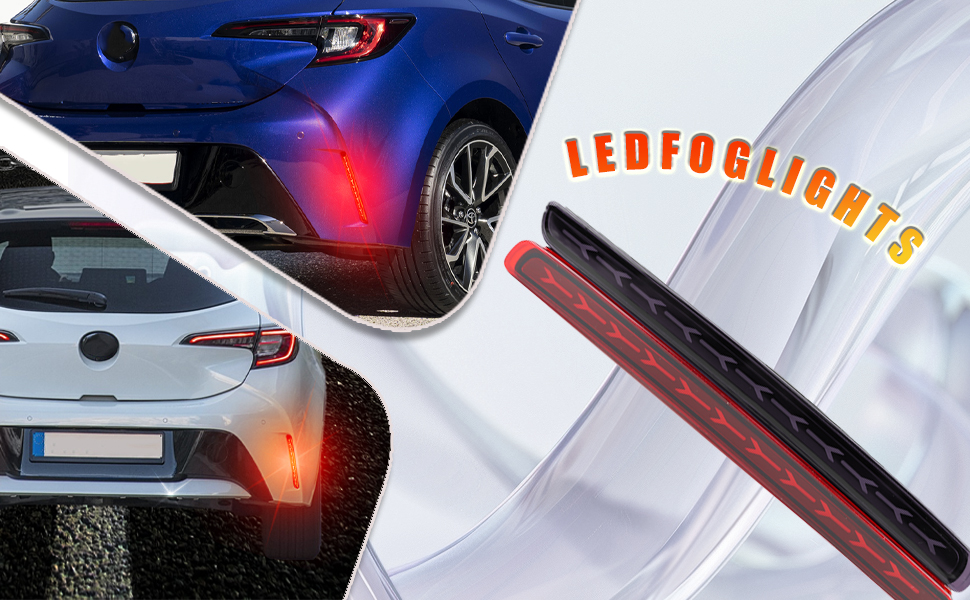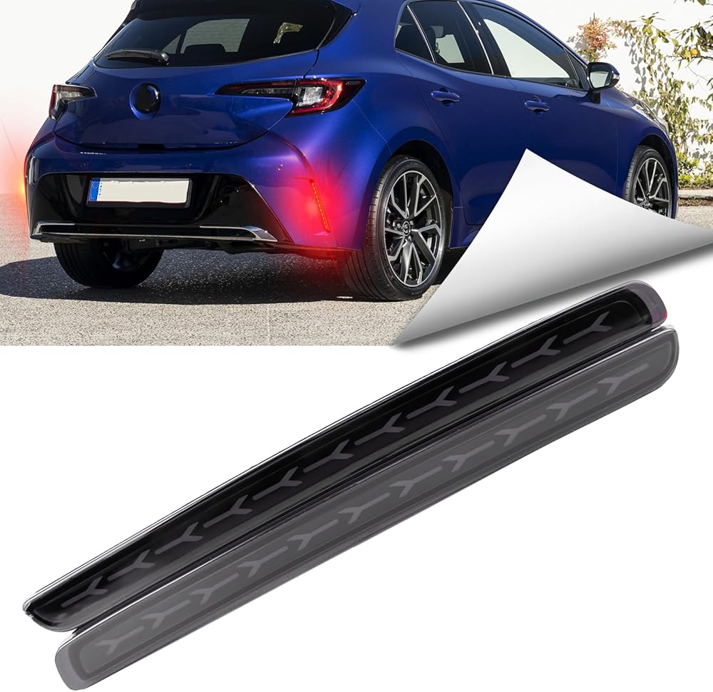 2Pc Full LED Rear Bumper Reflector Lights Kit for Toyota Corolla Hatchback 2019-2025 Tail Lamp Brake Fog Lamps Daytime Running Light,Rear Reflector Panel Trim Lamp Accessories (Smoked)