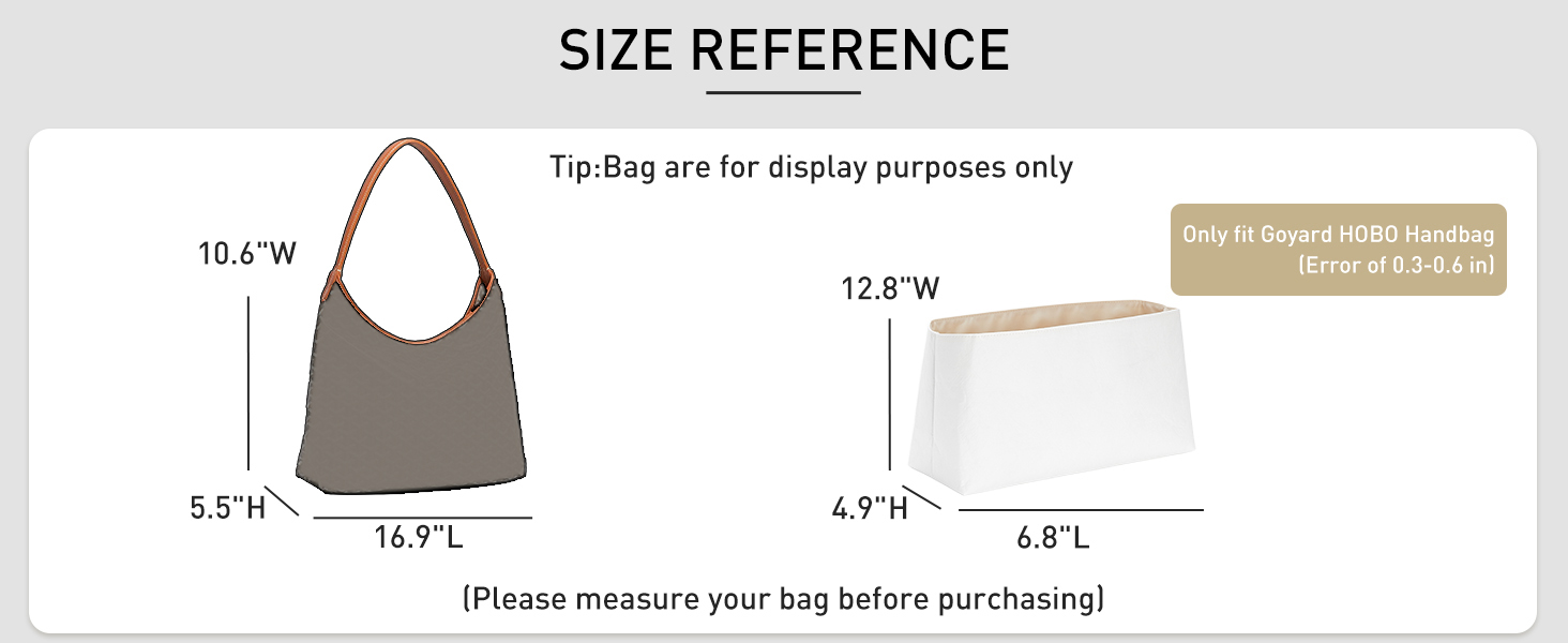 【مناسب تمامًا لـ GY Bohème Hobo】: مصمم بشكل رائع بأبعاد 12.8 بوصة طول × 4.9 بوصة عمق × 6.8 بوصة ارتفاع، مصمم خصيصًا لـ GY Bohème Hobo (16.9 بوصة طول × 5.5 بوصة عمق × 10.6 بوصة ارتفاع). بعد القياسات المتكررة واختبارات الحقيبة الحقيقية، تتناسب بشكل محكم مع محيط الحقيبة دون أن تشغل مساحة إضافية، مما يحافظ على حقيبتك الفاخرة في شكل مثالي. يرجى التأكد من طراز حقيبتك أو قياس المقاس قبل الشراء لضمان الملاءمة الدقيقة