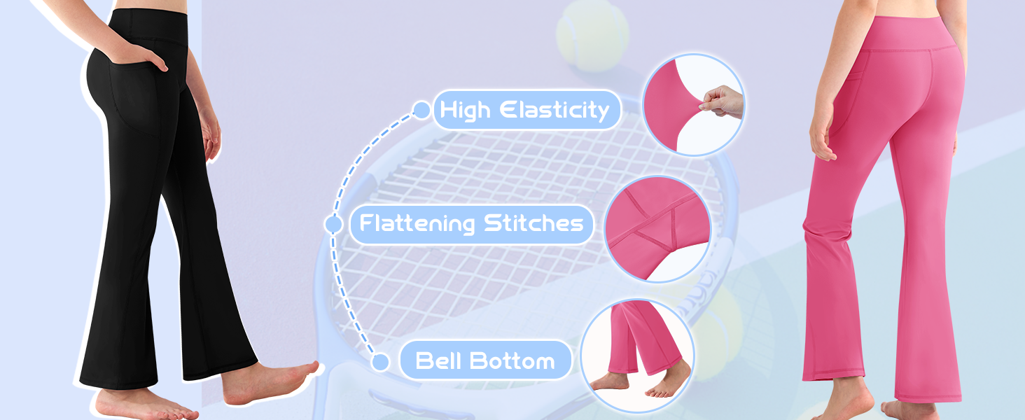 【بنطال ضيق متوهج من Bootcut】مصنوع من 75% نايلون و25% ألياف لدنة ناعمة، يوفر تصميم السراويل الضيقة للفتيات حرية أكبر في الحركة والراحة، مع الأخذ في الاعتبار كل من الموضة والرياضة. توفر سراويل اليوجا المتوهجة هذه ملاءمة جذابة لجميع أنواع الجسم وتطيل أرجل الفتيات المراهقات.