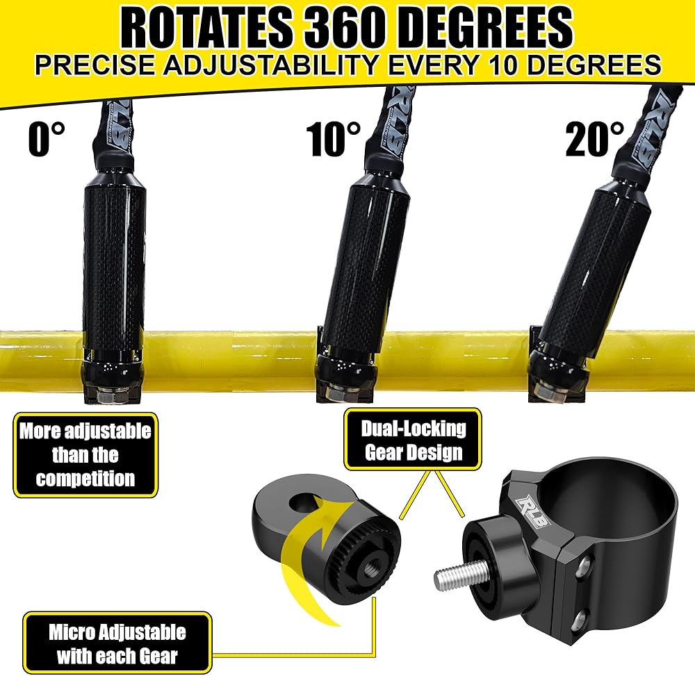 【Easy to Install】Mount on any 2" horizontal roll bar, vertical roll bar, or any point on roll cage at ANY ANGLE! All stainless-steel hardware included, and quick double-bolt clamp installation.