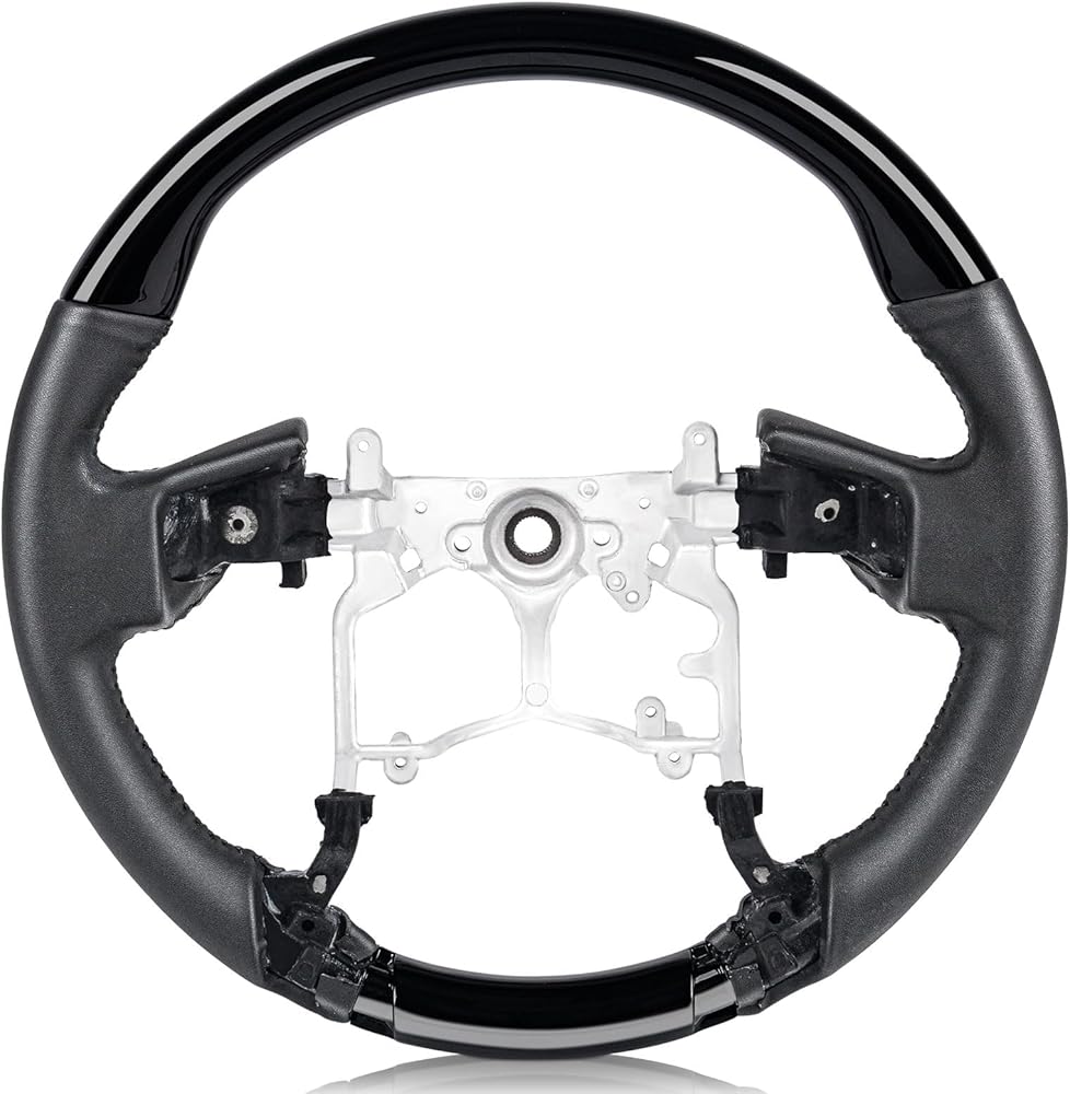 عجلة قيادة بيانو سوداء لسيارة Toyota Tundra 2014-2021، Tacoma 2012-2023، 4Runner 2010-2024، Sequoia 2014-2022، شكل دائري على طراز OEM، مقبض جلد أسود لامع وناعم