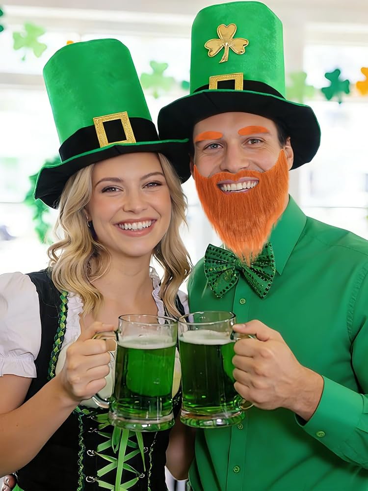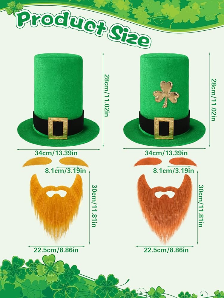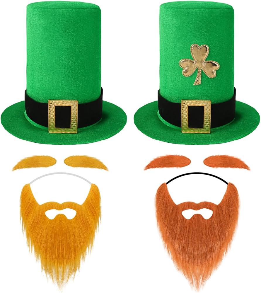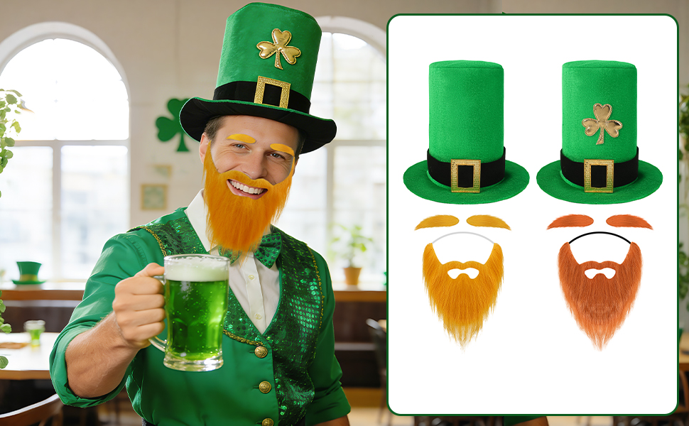 عبوة من قطعتين من قبعة القديس باتريك لبريشون مع لحية الجني الأيرلندية باللون الأخضر البرسيم قبعة للبالغين قبعة عيد القديس باتريك المفضلة للحفلات التنكرية