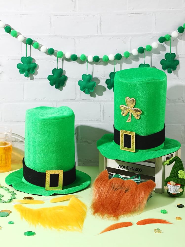 النمط الأيرلندي الأصلي: تم تصميم إكسسوارات يوم القديس باتريك بعناصر أيرلندية، وتتميز بألوان خضراء كلاسيكية وتصميمات مرحة مستوحاة من الجني، زي الجني يجلب السحر الأيرلندي الأصيل إلى المسيرات والحفلات والعروض