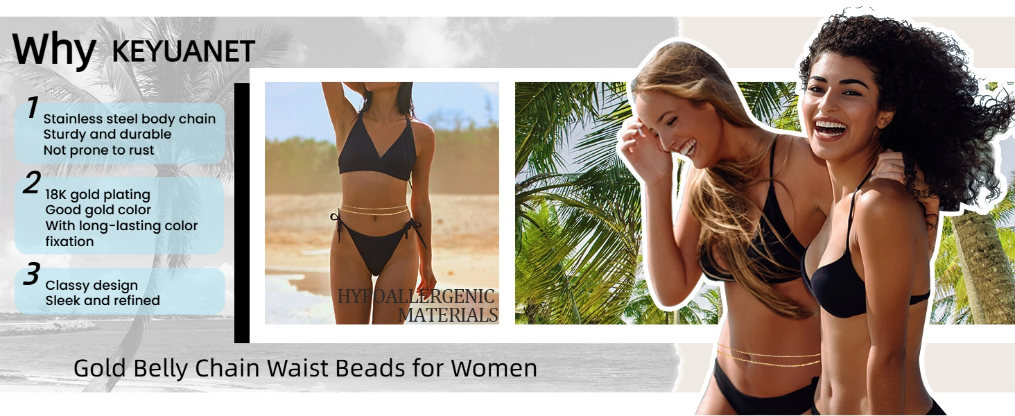 Unique Design: This belly chain is made of gold stainless steel. When you wear it, the skin contrasts with the cold metallic luster, showcasing the softness of the skin. The Jewelry flickers faintly with body movements, strengthening the curves of the figure. By positioning the waist chain (such as tying it around the hips or high waist), the leg lines can be visually elongated. It can add layers and details to the overall look, making you stand out in the crowd.