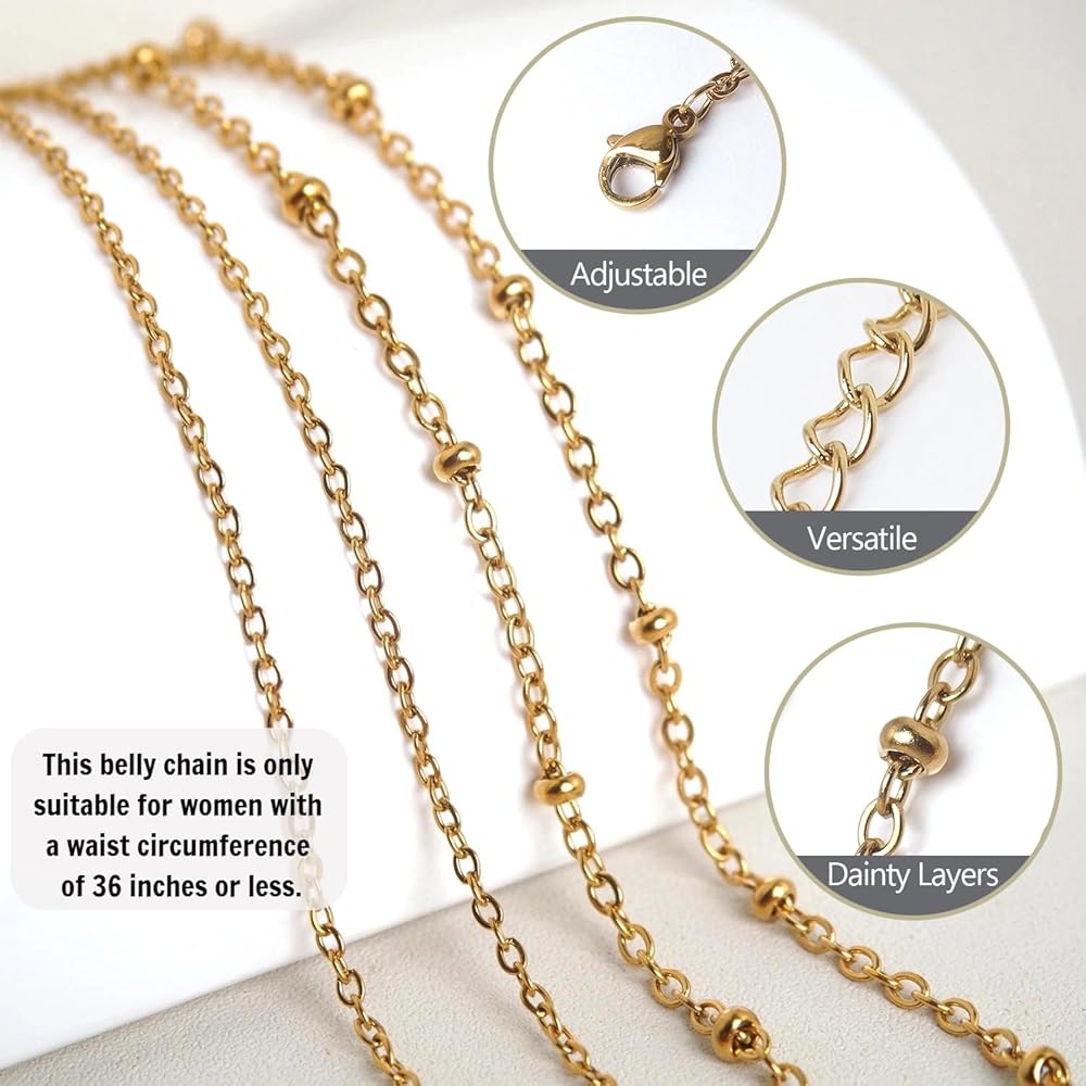Gold Belly Chain Waist Chains for Women Sexy Bikini Waist Beads Body Chain Belt Summer Beach Jewelry Rave Accessories Stainless Steel Boho Body Jewelry Gifts