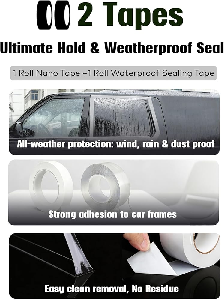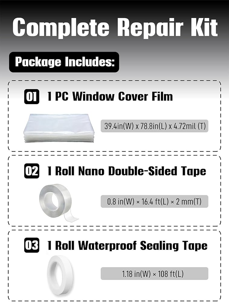 Strong Weatherproof Seal – Includes two tapes: clear nano double-sided tape and heavy-duty waterproof tape. Together, they lock out wind, rain, and dust.