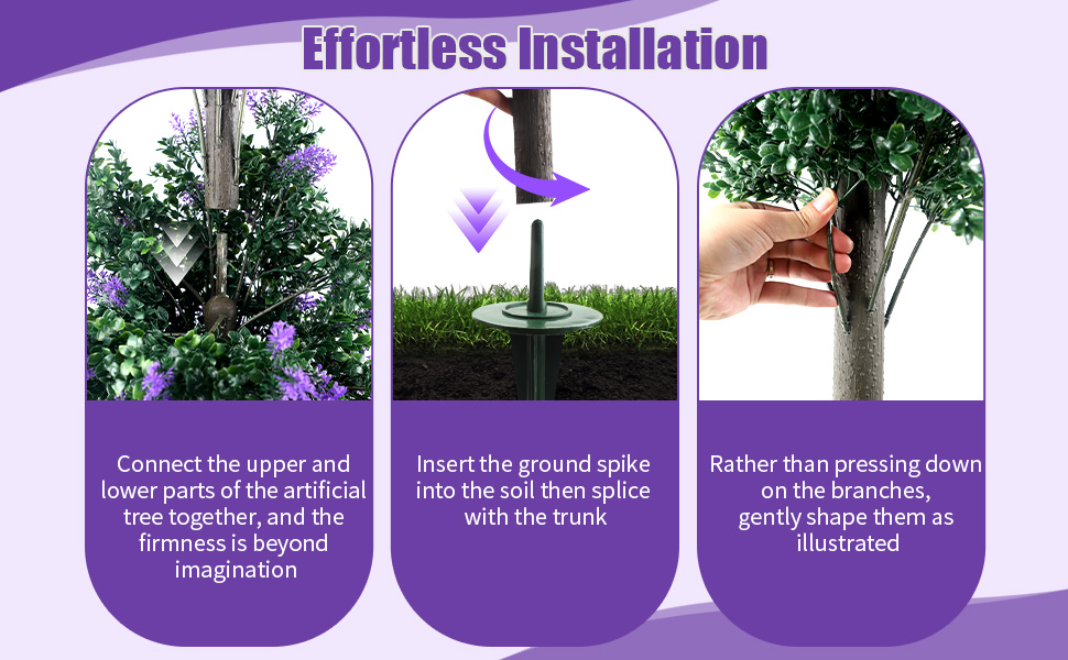 سهولة التجميع: لا حاجة لأي أدوات، أكمل الإعداد في غضون خمس دقائق. بمجرد تجميعها، تقف الشجرة بثبات كقطعة واحدة، جاهزة لوضعها في التربة أو الوعاء