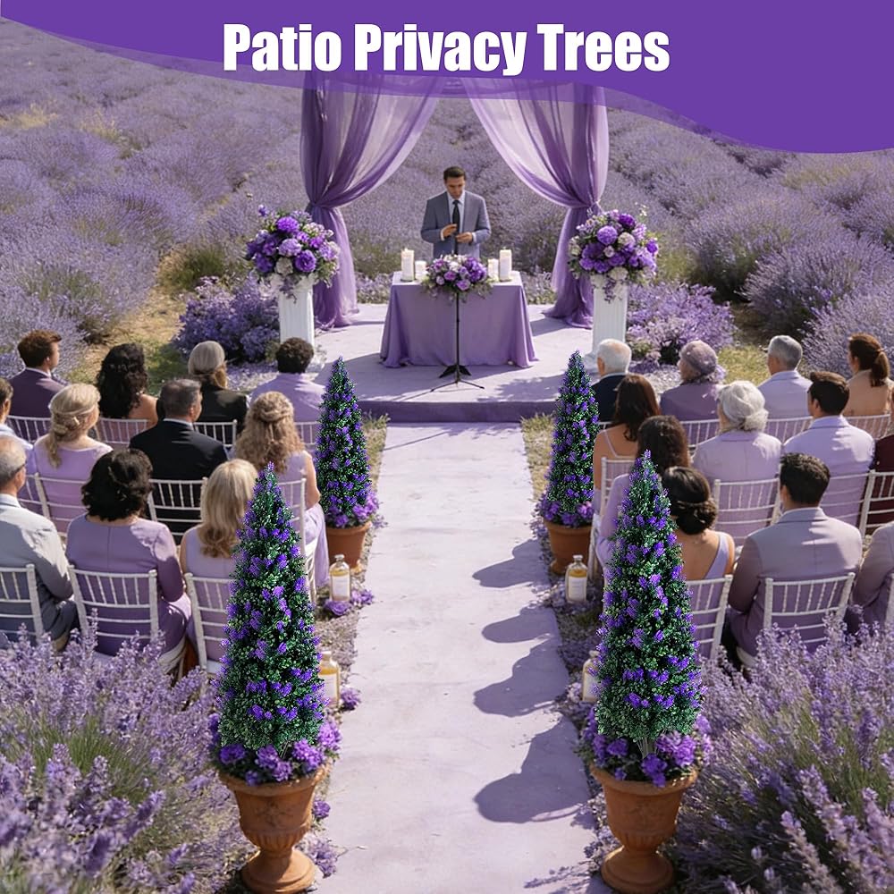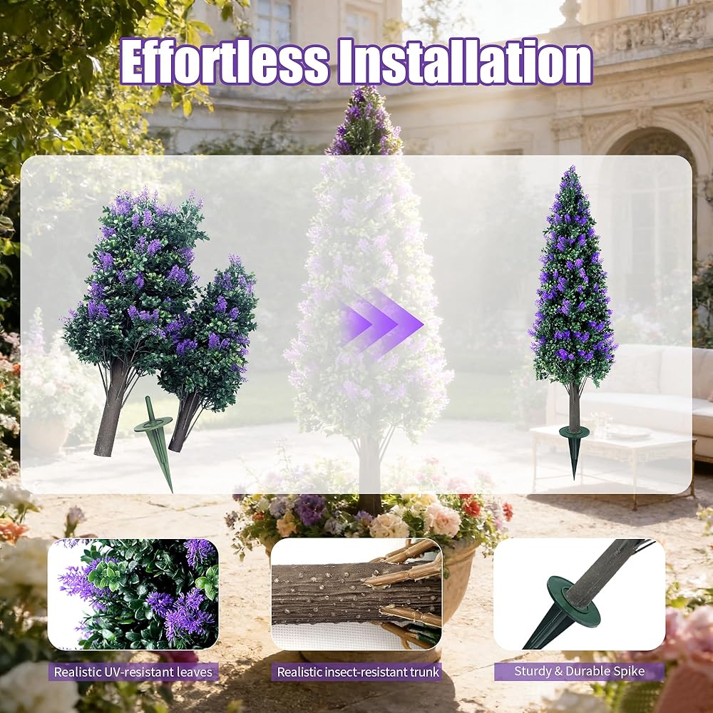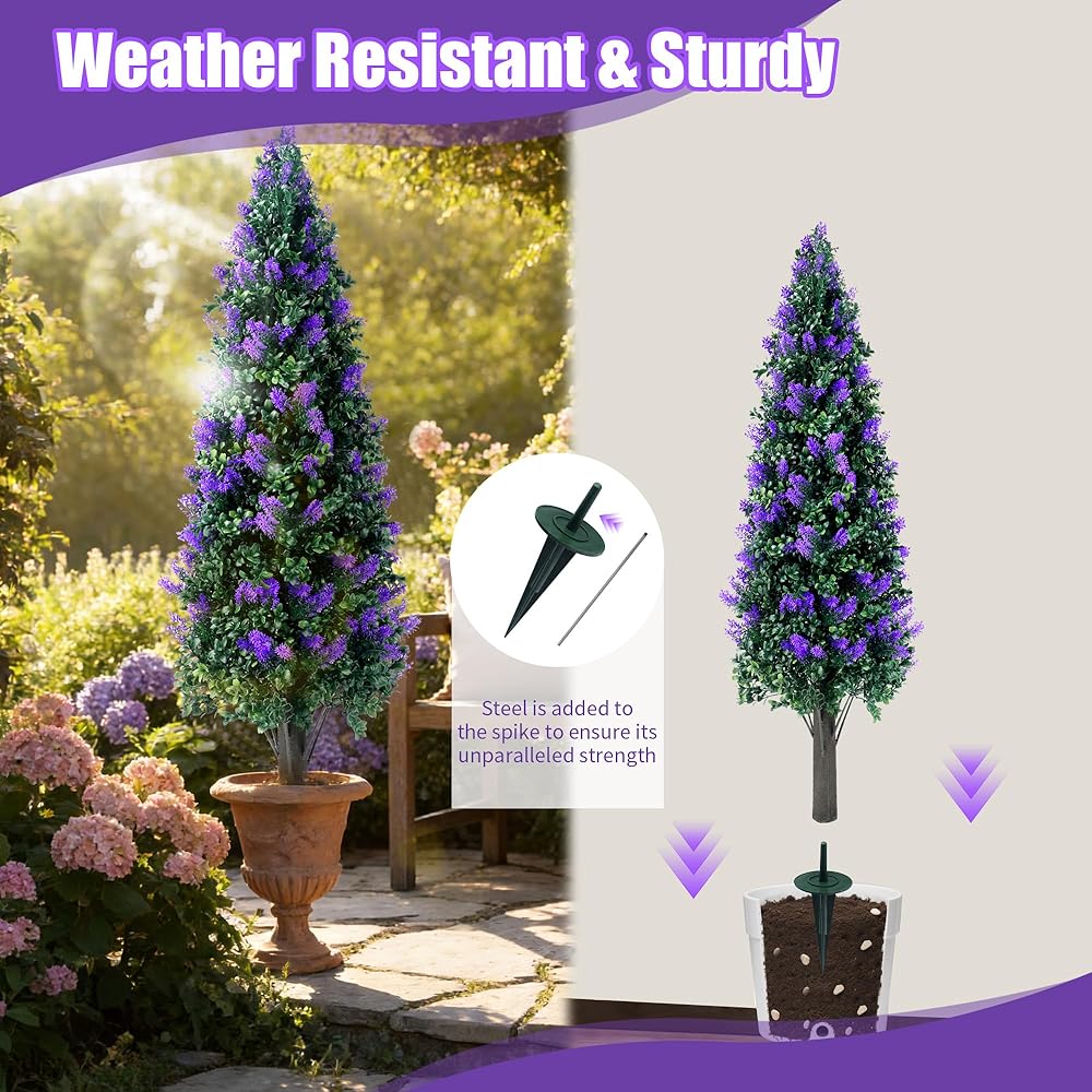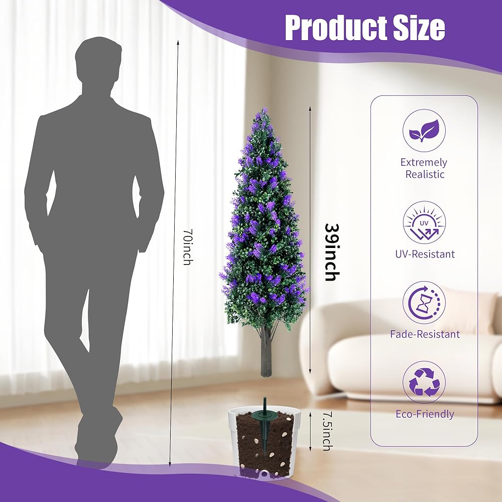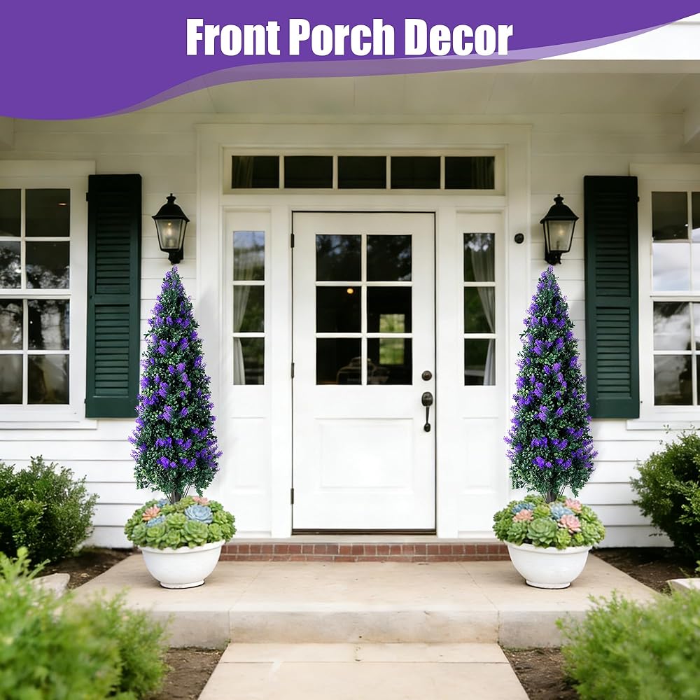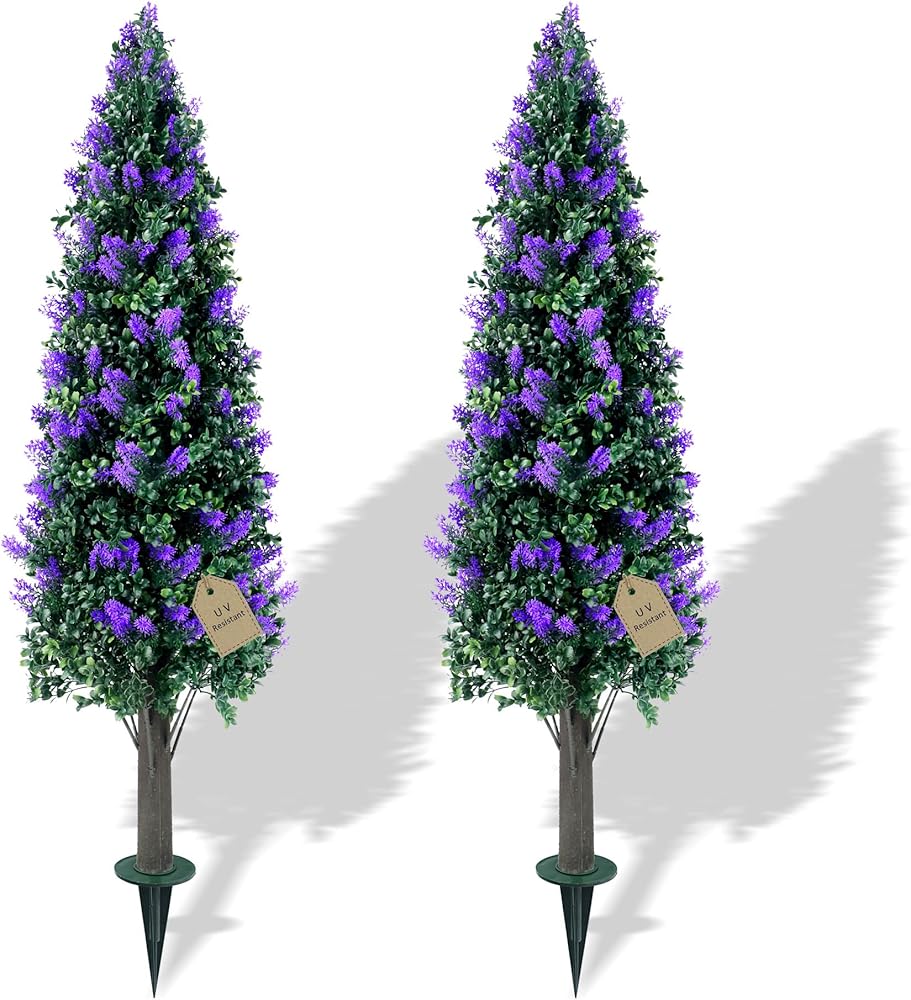 مجموعة أشجار توبياري لافندر صناعية بطول 3.3 قدم مكونة من قطعتين مع شجيرات نباتات وهمية مقاومة للأشعة فوق البنفسجية، وشجيرات صناعية طويلة للمزارع الداخلي في الهواء الطلق، ديكور خارجي للشرفة الأمامية دائمة الخضرة