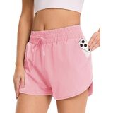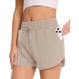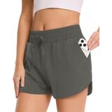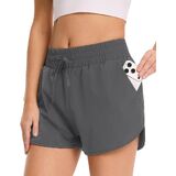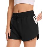 شورت جري للنساء من GAYHAY - شورت رياضي رياضي سريع الجفاف للنساء، شورت عالي الخصر للتمارين الرياضية باللون الأسود مع جيوب in Kuwait