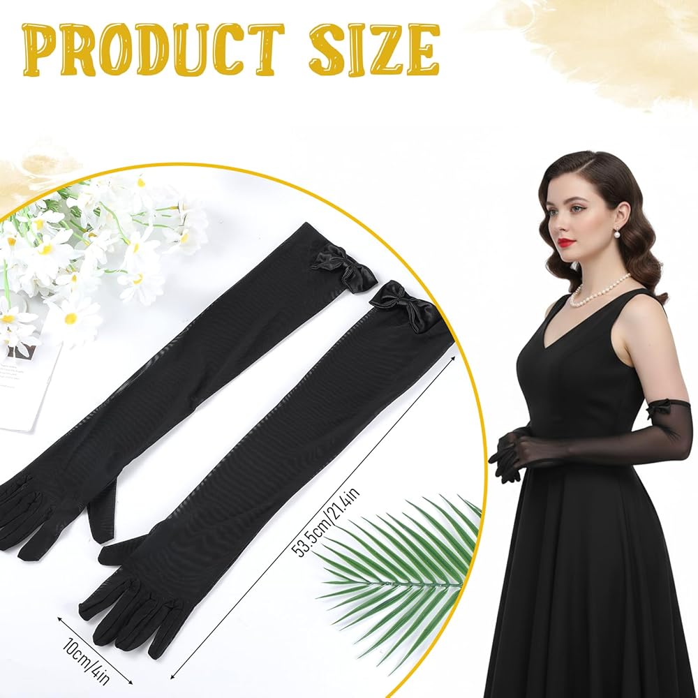 Product Size: Package Contents: 1 Pair of Long Tulle Bow Gloves, black lace gloves for women