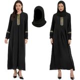 【Design】Floral print on the cuffs and front add sophistication and novelty to this islamic dresses for women. Elegant and simple solid color maxi prayer clothes. Round neck,easy to take off and put on.