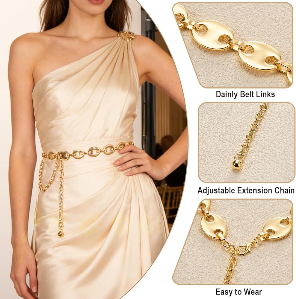 [اختيار هدية]: يعد حزام السلسلة الذهبي هذا هدية لطيفة لأصدقائك أو عائلتك في العديد من المناسبات، مثل عيد الميلاد، وعيد الشكر، وعيد الحب، وأعياد الميلاد، والحفلات، وما إلى ذلك.