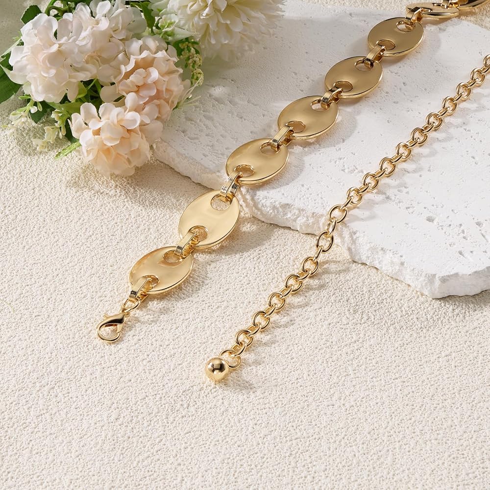 [حجم حزام السلسلة]: يبلغ الطول الإجمالي لحزام السلسلة الذهبية هذا حوالي 115.5 سم/45.4 بوصة (يحتوي على السلسلة الممتدة). تحتوي سلسلة الوصلات البيضاوية السميكة على مشابك سرطان البحر حوالي 74 سم/29.1 بوصة؛ السلسلة الممتدة حوالي 41.5 سم/16.3 بوصة؛ يبلغ طول جزء السلسلة البيضاوية حوالي 33.7 مم/1.3 بوصة وعرضه 25 مم/0.98 بوصة. سيسمح لك طول السلسلة المناسب بتعديلها لتناسب الفساتين المختلفة.