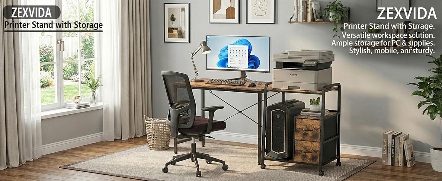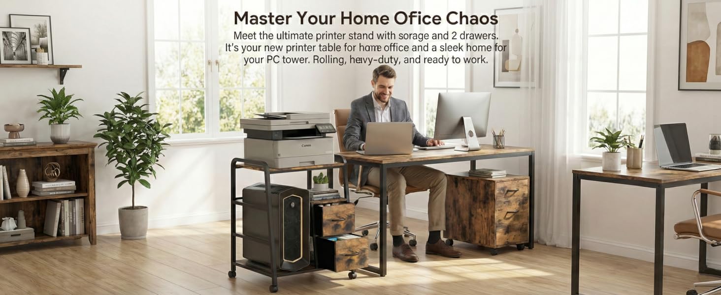 【هيكل معدني ممتاز وMDF】مصنوع من معدن مطلي عالي الجودة ولوح MDF متين، مما يضمن ثبات طويل الأمد ومظهر أنيق وسهولة التنظيف. تم تصميم طاولة الطابعة المزودة بوحدة تخزين لتتحمل الاستخدام اليومي.
