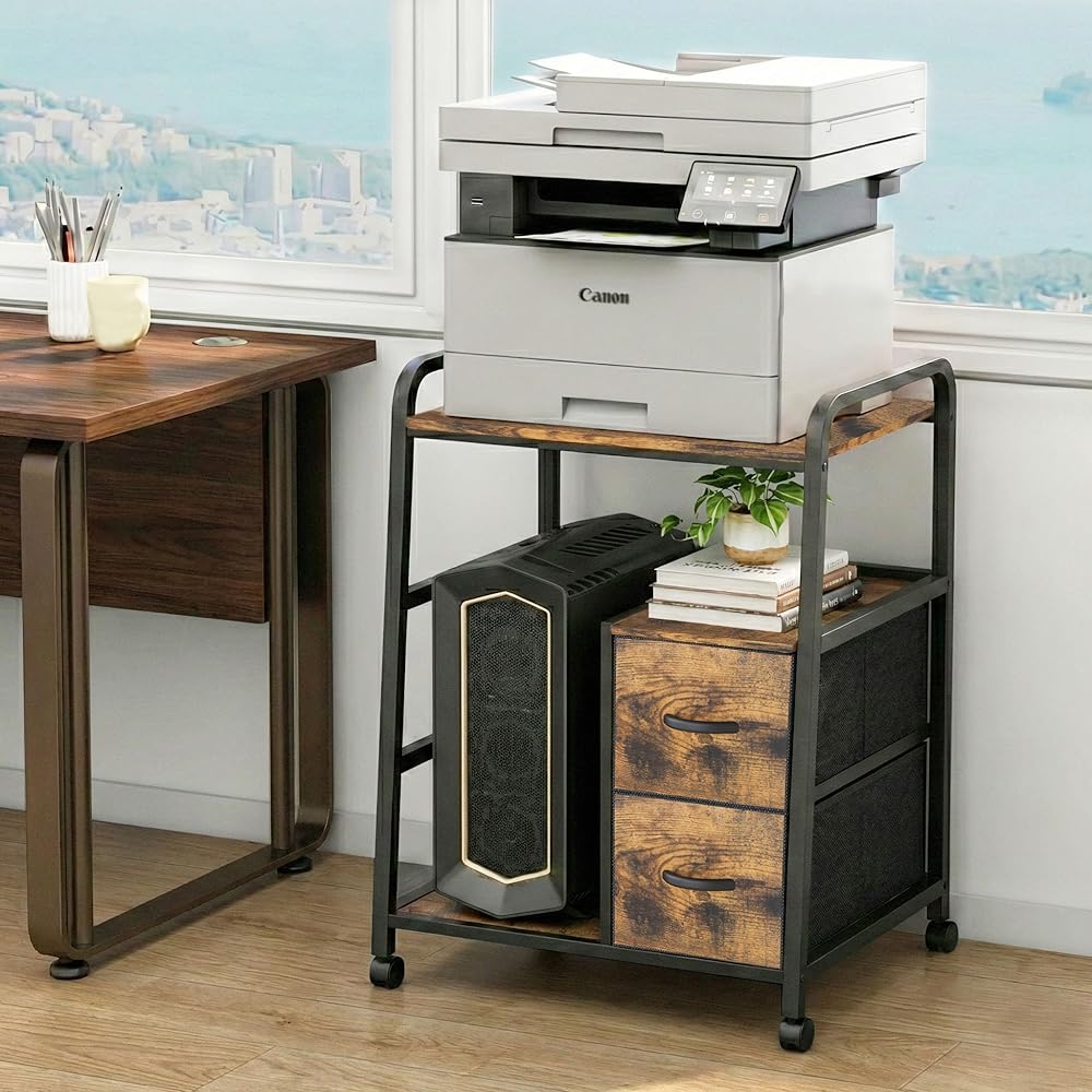 【استخدام متعدد الأغراض ومتعدد الاستخدامات】أكثر من مجرد حامل طابعة للمكتب؛ يعد قسم الرف المفتوح مثاليًا لبرج الكمبيوتر أو آلة التقطيع أو تخزين الملفات والكتب، مما يجعله حل تخزين متكامل لمكتبك أو دراستك.